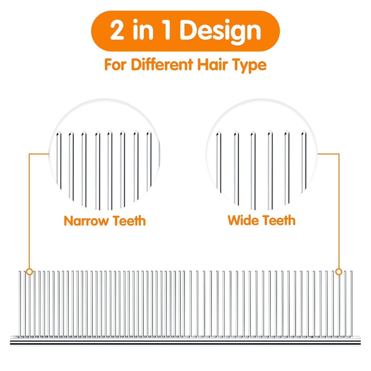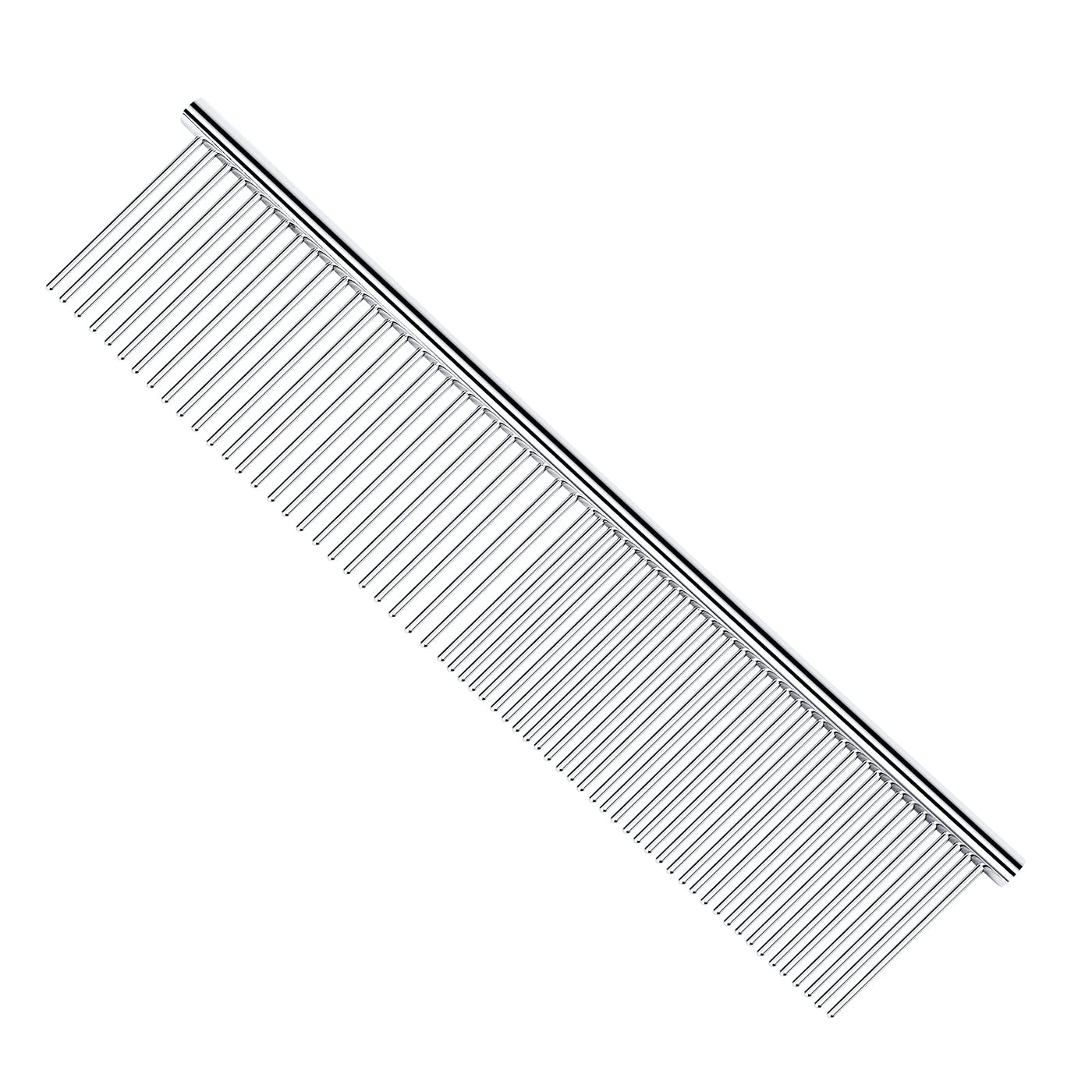 Pettom Pet Steel Grooming Tool Poodle Finishing Butter Comb 7 1/2-Inch L Silver Dog Combs With Rounded Ends Stainless Steel Teet