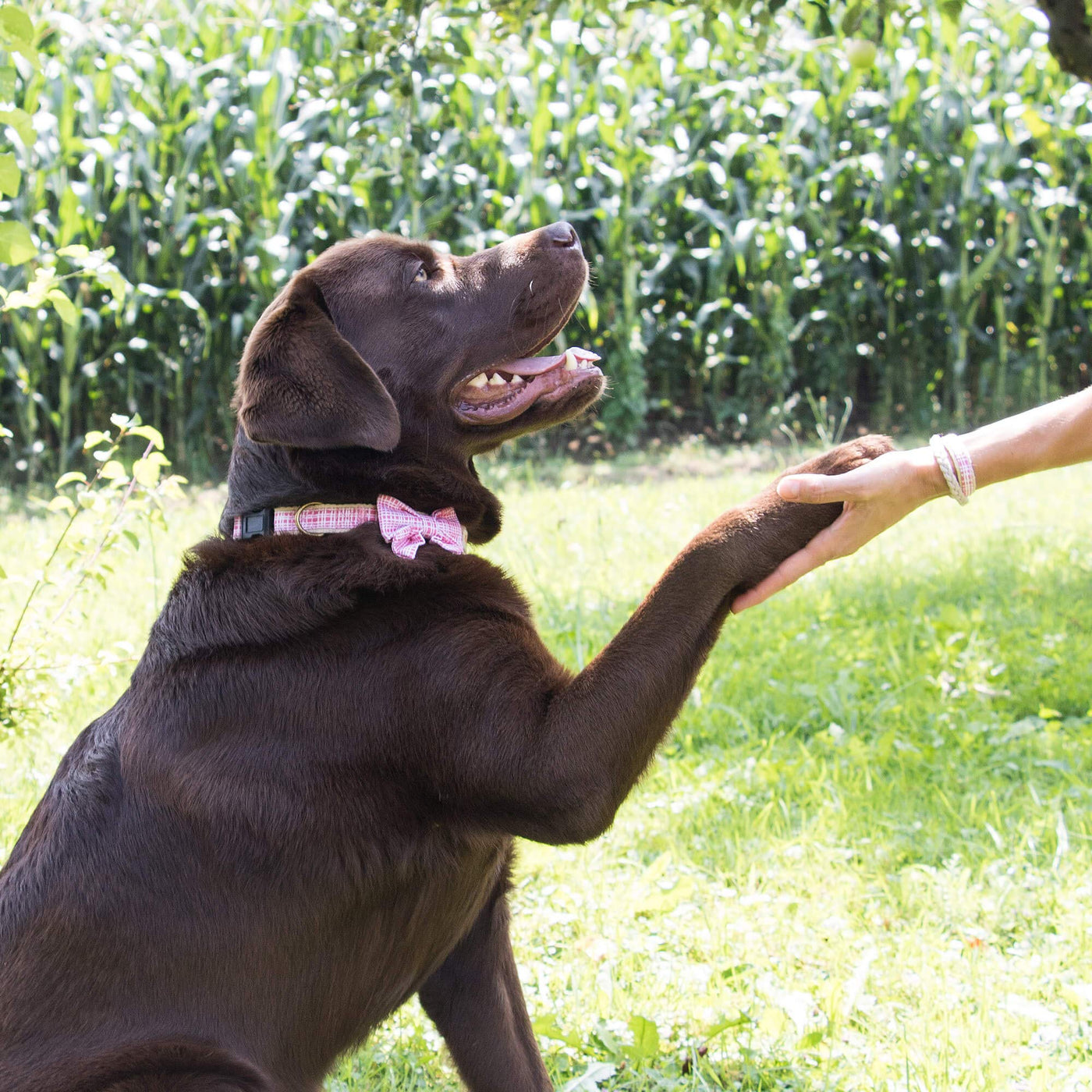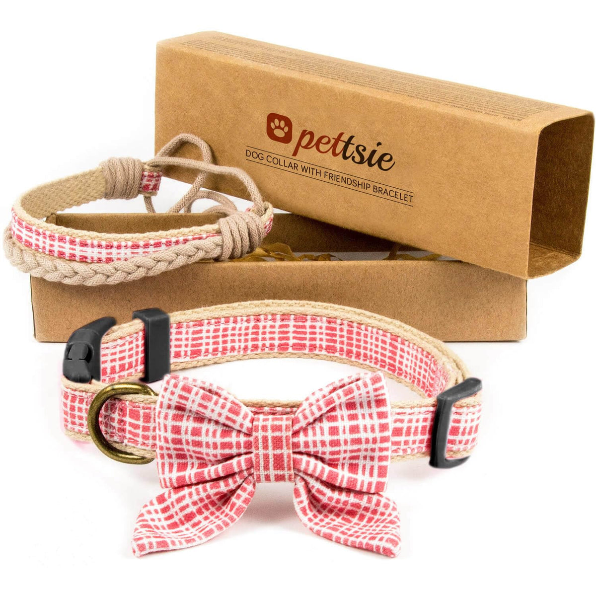Pettsie Dog Collar, Bow Tie, Friendship Bracelet, 2 Easy Adjustable Sizes, Pet-Friendly Hemp, Comfortable And Soft For Sensitive Skin, Strong D-Ring For Accessories, Carton Box, S, Pink