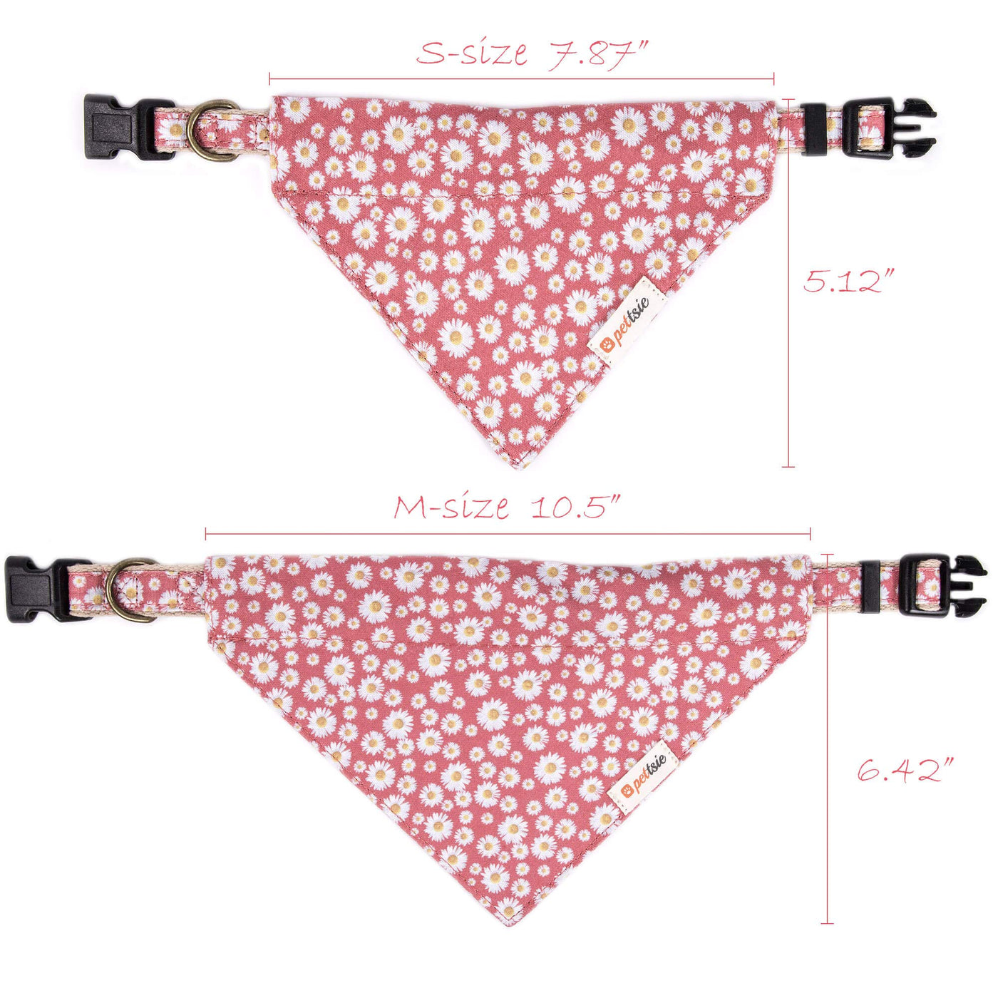Q: What sizes are available for the Pettsie Matching Dog Collar?A: The Pettsie Matching Dog Collar is available in three adjustable sizes: Small (10 - 15.5 inches), Medium (13 - 20 inches), and Large (18 - 26 inches), ensuring a comfortable fit for most dog breeds.