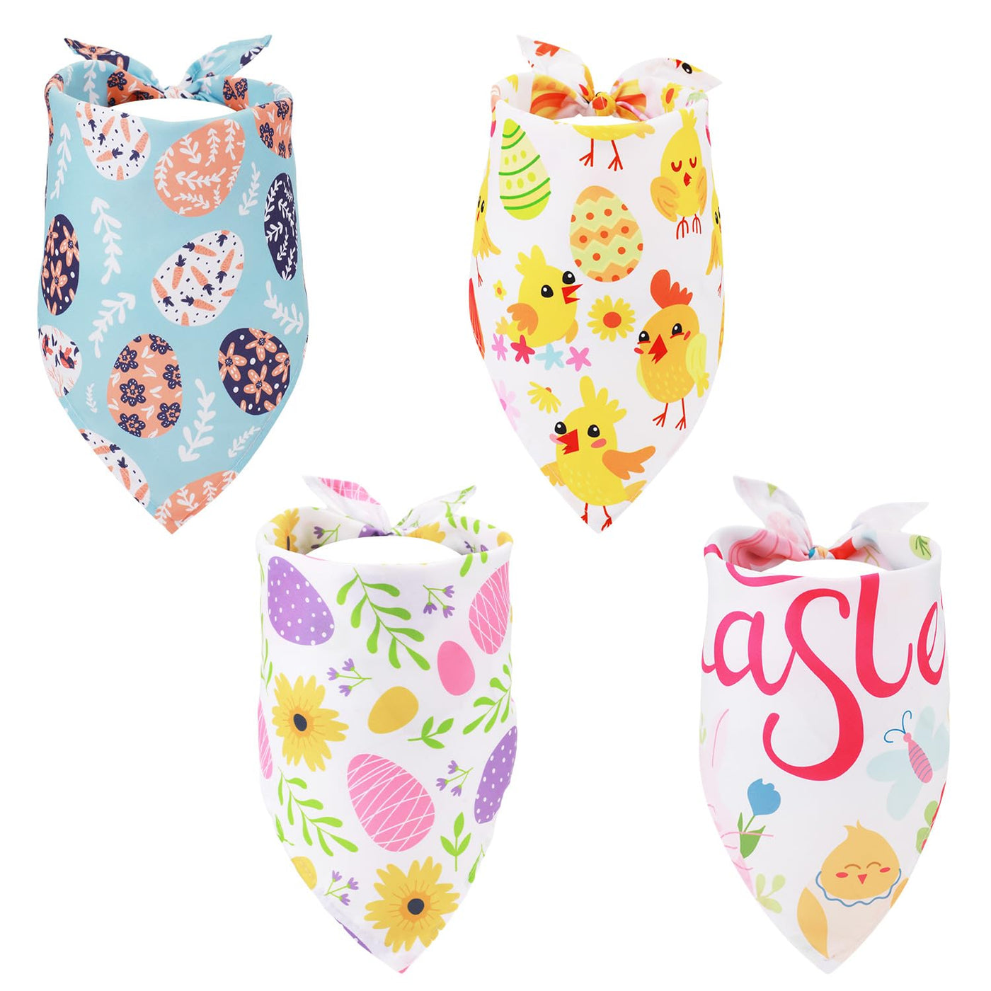 Peutier 4Pcs Easter Dog Bandana, Rabbit Easter Egg Pattern Easter Dog Scarf Triangle Bibs Pet Kerchief Bandana For Dogs Cats Hol