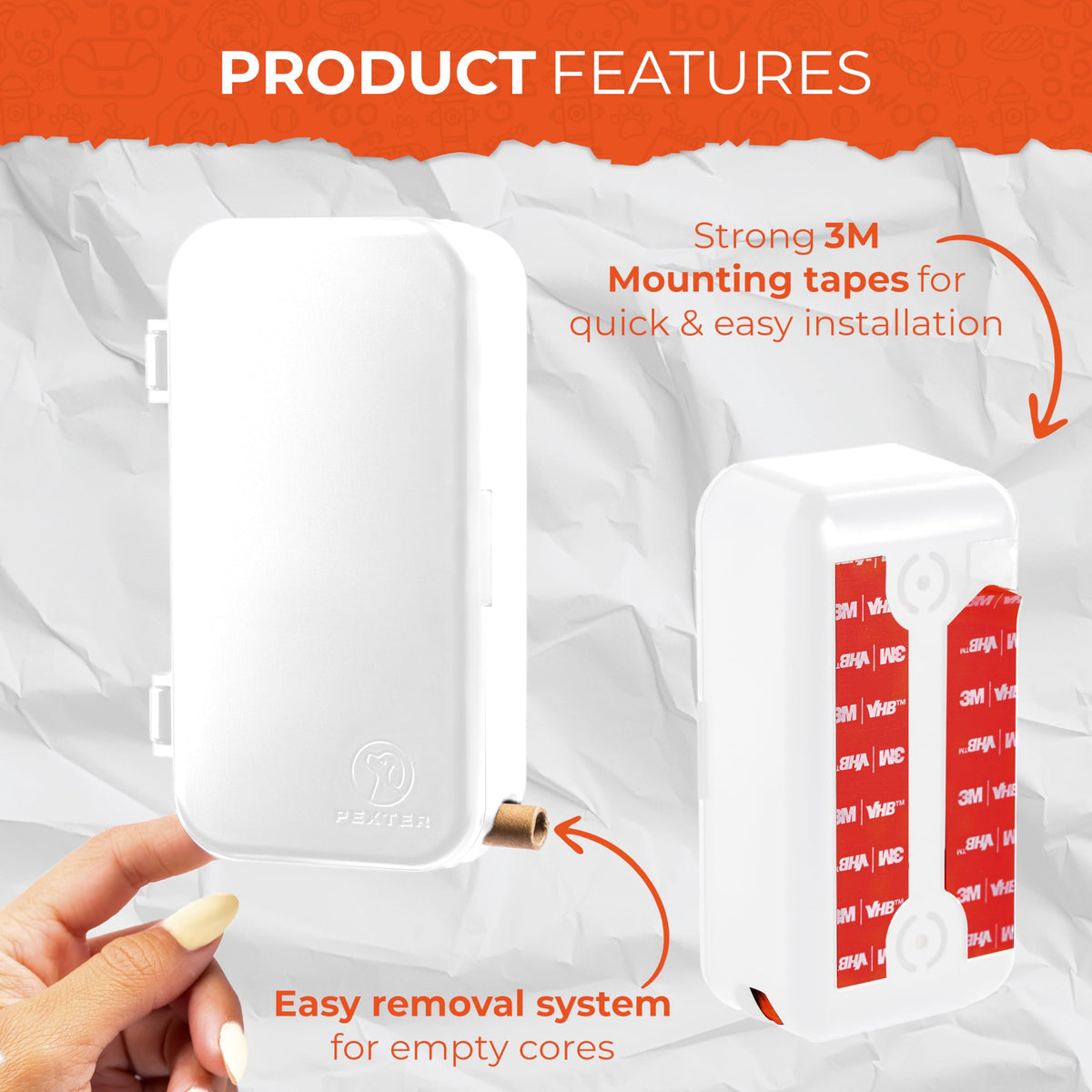 Introducing the Pexter Dog Poop Bag Dispenser: a convenient, heavy-duty solution for pet waste management. Designed in the USA, this discreet and stylish dispenser is perfect for both indoor and outdoor settings, be it your backyard, patio, or by your front door. Made from durable, weather-resistant ABS plastic, it ensures longevity and adaptability to all environments. Offering two mounting options, it includes anchors and screws for solid surfaces, and weatherproof, double-sided mounting strips for smooth surfaces. Each box comes with 4 unscented, high-quality waste bag rolls (60 bags total), making it an ideal choice for both dog and cat owners, especially for placement near litter boxes. Keep your space clean and tidy with the versatile and elegant Pexter waste bag dispenser.