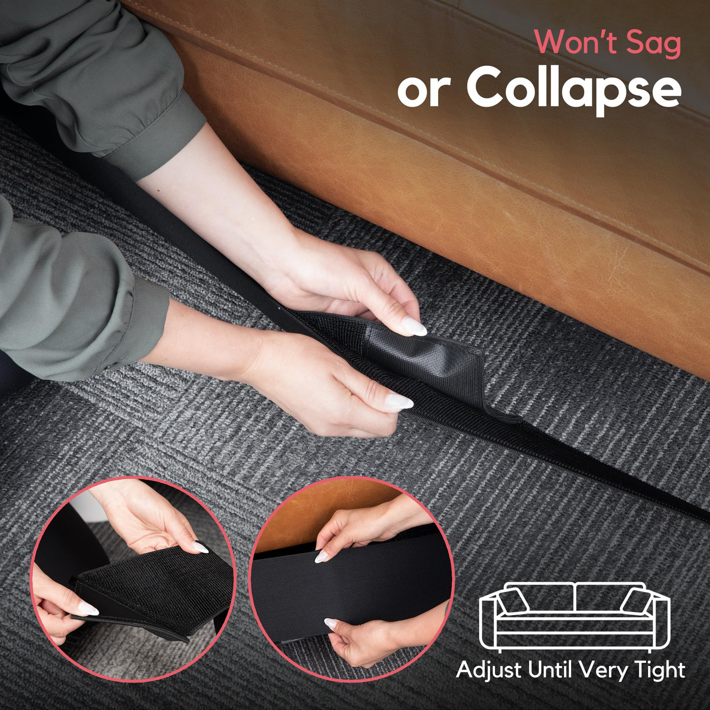 If you're tired of straining to reach your pets' toys or kids' toys from under the couch, then look no further than the PhildaHome under couch blocker. Unlike other toy blockers for furniture, our under couch blocker is designed to easily create a barrier along three sides of your loveseat to block cats / dogs toys, robot vacuums, and kids' toys from getting stuck in the gap under the couch. The black nylon material will blend into the natural look of your couch and won't collapse or sag when kids' toys or pet toys hit the barrier. By using hook and loop to secure the toy blocker around your couch legs, you can easily adjust the length and ensure a taut, strong barrier for under couch that will act as an efficient toy blocker every time! This size fits standard love seats with a gap between 3' and 4.5'.