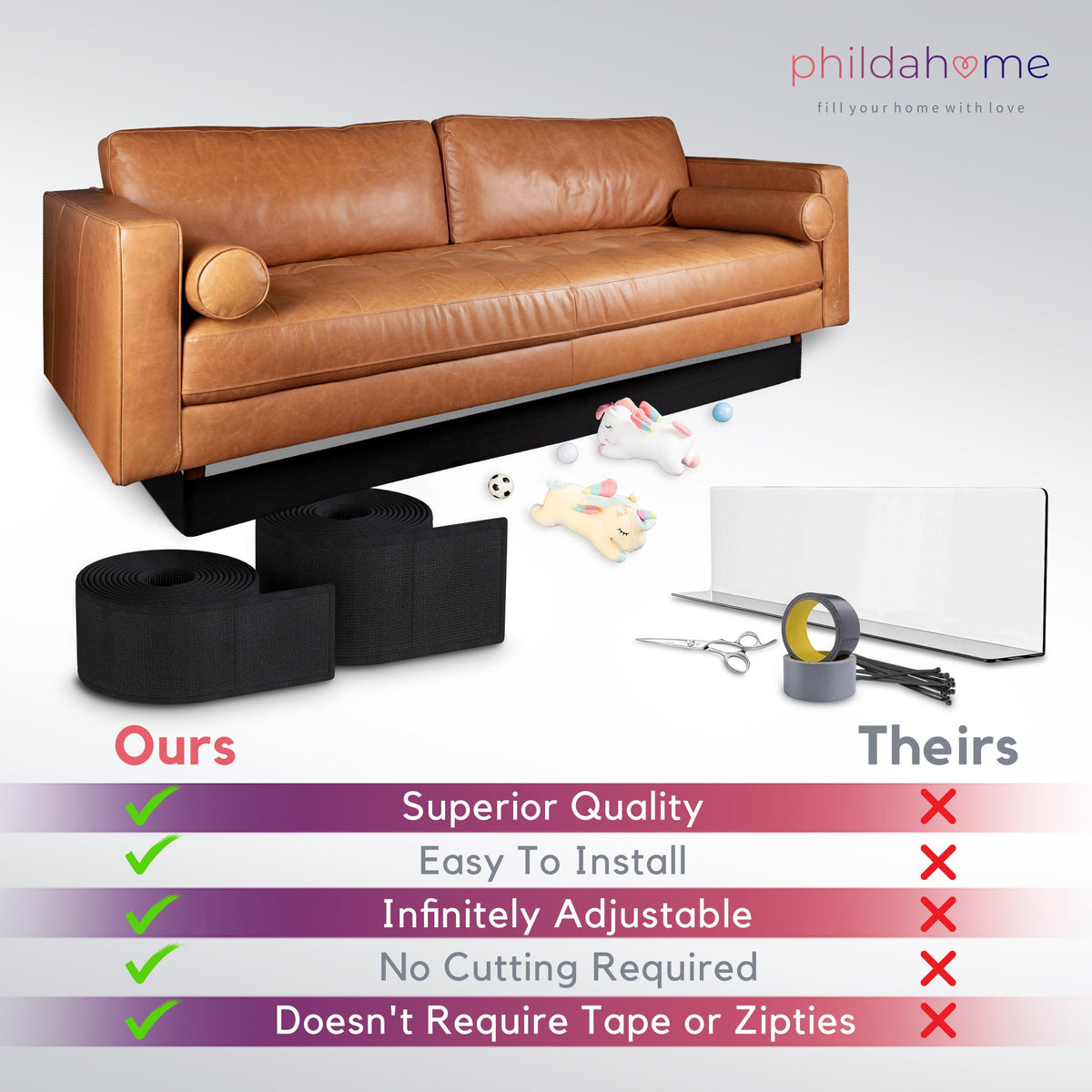 Phildahome Under Couch Blocker For Kid And Pet Toys, Toy Blocker For Under Couch, Fits Standard Loveseats With Tall Legs (108' X 4.8')