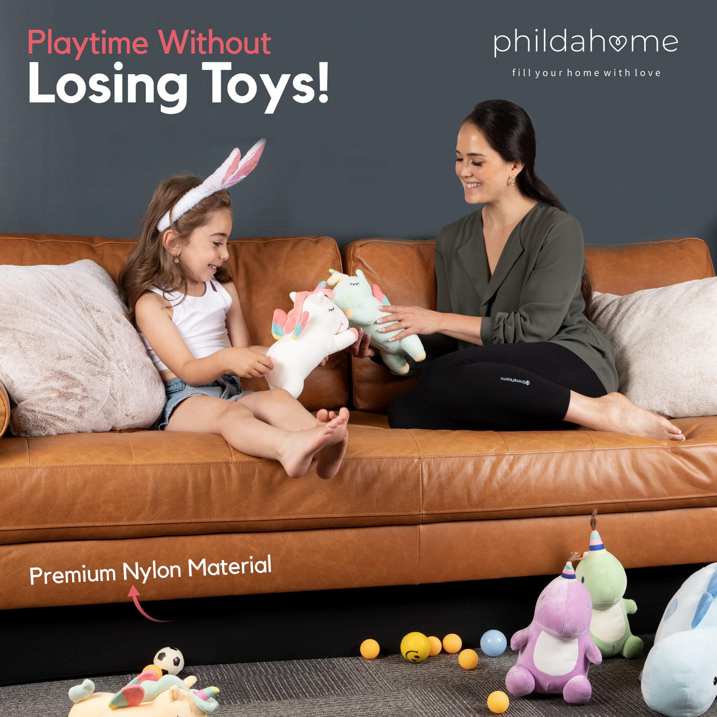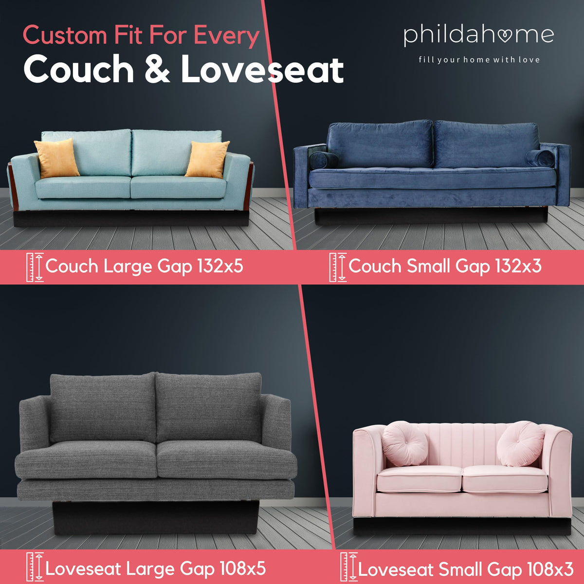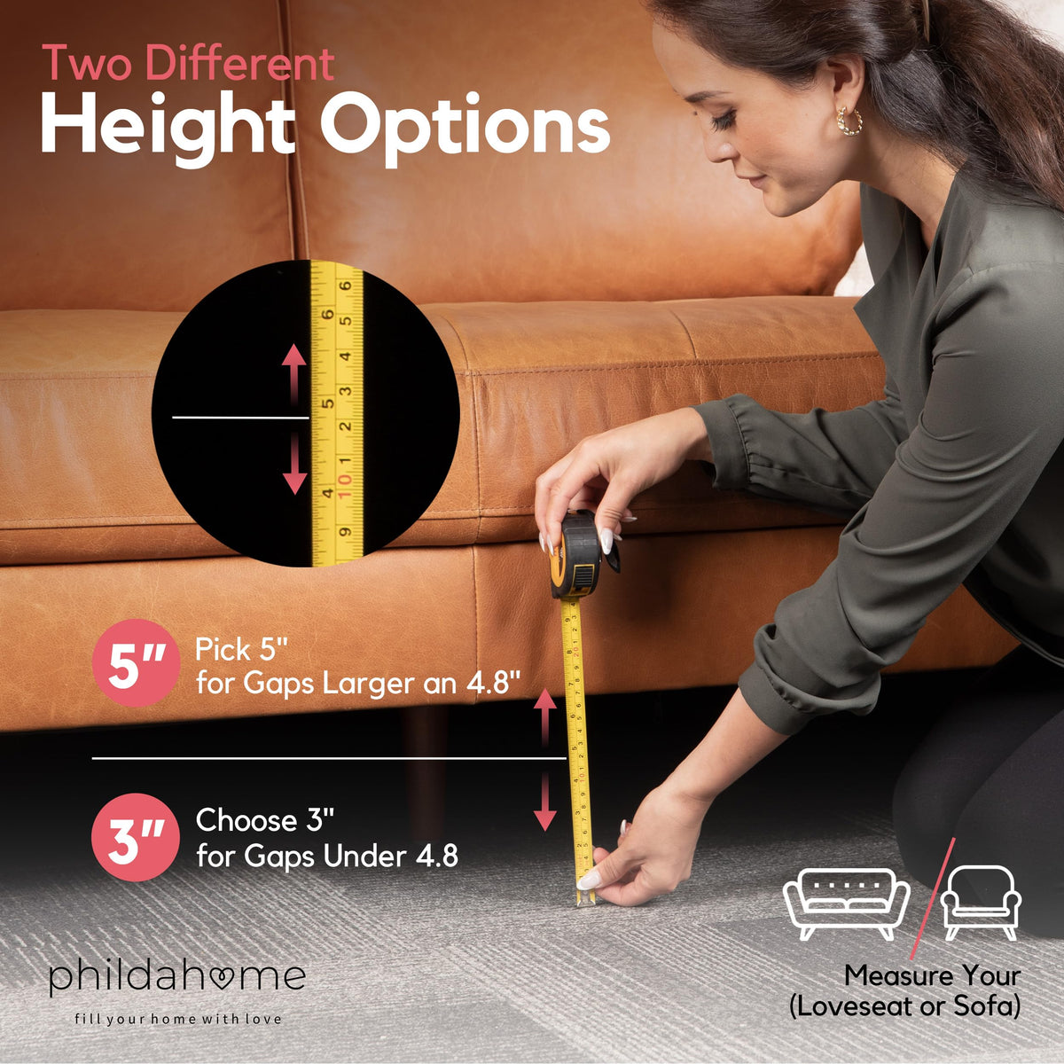 If you're tired of straining to reach your pets' toys or kids' toys from under the couch, then look no further than the PhildaHome under couch blocker. Unlike other toy blockers for furniture, our under couch blocker is designed to easily create a barrier along three sides of your loveseat to block cats / dogs toys, robot vacuums, and kids' toys from getting stuck in the gap under the couch. The black nylon material will blend into the natural look of your couch and won't collapse or sag when kids toys or pet toys hit the barrier. By using the hook and loop to secure the toy blocker around your couch legs, you can easily adjust the length and ensure a taut, strong barrier for under couch that will act as an efficient toy blocker every time! This size fits standard love seats with a gap of 4.8' or more.
