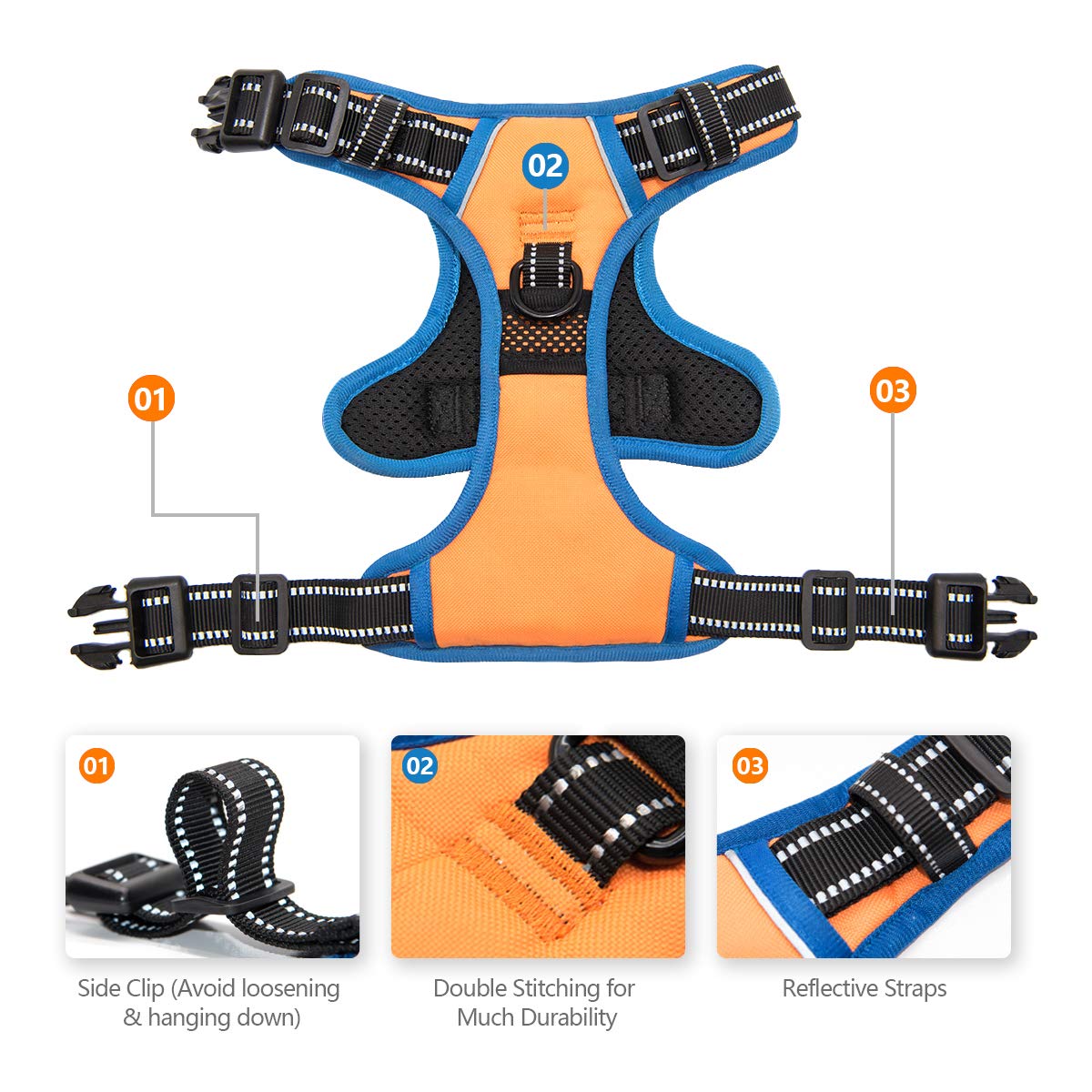 [Harness Is Essential!] Research Shows That Regular Exercise, Outdoor Play Are Good Way To Keep Your Dog Active, Satisfied And Well Behaved. Then A Suitable Harness Is Essential ! [Most Important Features] 1. 2 Leash Attachment Hooks These Two Hooks Are Available For Almost All Leash Hooks. They Are Big Enough. If You Use The Front Hook On The Chest, It Will Reduce The Pulling A Lot And Make Going For A Walk More Enjoyable. As Usual, Most People Like To Use The Back Hook. 2. 1 Soft Training Handle You Will Like This Handle On The Back, It Is Helpful In Controlling Dogs A Bit Closer To You When They Are Trying To Lunge At Something. Also, It Is Convenient To Assist Dogs Into The Car. 3. Reflective The Reflective Material Will Be Really Nice When It Gets Dark. Also, Your Dog Will Be Saw Easily. This Reflective Material Can Make Drivers Have Long Time To React, Which Ensure Your Dogs Safety! 4. 4 Ways Adjustable Points These Four Slide Buckles Are Adjustable, Two Are On The Neck And Other Two Are On The Chest. You Can Adjust It To The Best Size. [How To Choose The Correct Size? ] Step 1. Measure Dogs Neck Girth; Step 2. Measure Dogs Chest Girth; Step 3. You Should Be Able To Fit Two Fingers Under The Straps. If Between Sizes, Please Choose The Larger Size. Xs Neck: 10-12'; Chest: 11-20'; S Neck: 12-18'; Chest: 14-24'; M Neck: 14-20'; Chest: 16-28'; L Neck: 16-24'; Chest: 22-33'; Xl Neck: 22-33 ; Chest: 28-39'; The Back Length (The Top Strap That Contacts The Neck To The Chest Strap): Xs: 4.13 Inch S: 4.33 Inch M: 5.51 Inch L: 5.90 Inch Xl: 6.89 Inch Click The Add To Cart Button Now!