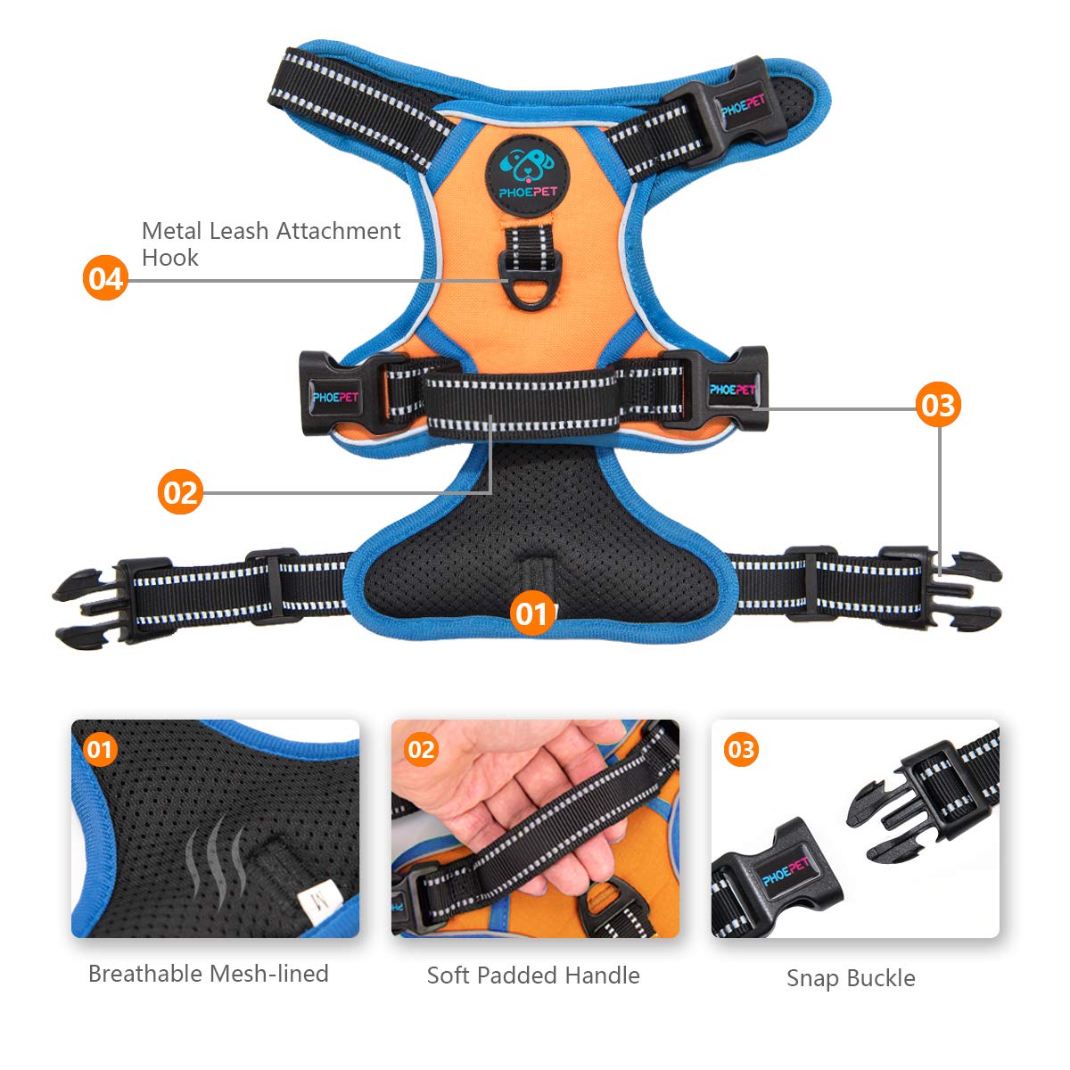 [Harness Is Essential!] Research Shows That Regular Exercise, Outdoor Play Are Good Way To Keep Your Dog Active, Satisfied And Well Behaved. Then A Suitable Harness Is Essential ! [Most Important Features] 1. 2 Leash Attachment Hooks These Two Hooks Are Available For Almost All Leash Hooks. They Are Big Enough. If You Use The Front Hook On The Chest, It Will Reduce The Pulling A Lot And Make Going For A Walk More Enjoyable. As Usual, Most People Like To Use The Back Hook. 2. 1 Soft Training Handle You Will Like This Handle On The Back, It Is Helpful In Controlling Dogs A Bit Closer To You When They Are Trying To Lunge At Something. Also, It Is Convenient To Assist Dogs Into The Car. 3. Reflective The Reflective Material Will Be Really Nice When It Gets Dark. Also, Your Dog Will Be Saw Easily. This Reflective Material Can Make Drivers Have Long Time To React, Which Ensure Your Dogs Safety! 4. 4 Ways Adjustable Points These Four Slide Buckles Are Adjustable, Two Are On The Neck And Other Two Are On The Chest. You Can Adjust It To The Best Size. [How To Choose The Correct Size? ] Step 1. Measure Dogs Neck Girth; Step 2. Measure Dogs Chest Girth; Step 3. You Should Be Able To Fit Two Fingers Under The Straps. If Between Sizes, Please Choose The Larger Size. Xs Neck: 10-12''; Chest: 11-20''; S Neck: 12-18''; Chest: 14-24''; M Neck: 14-20''; Chest: 16-28''; L Neck: 16-24''; Chest: 22-33''; Xl Neck: 22-33 ; Chest: 28-39''; The Back Length (The Top Strap That Contacts The Neck To The Chest Strap): Xs: 4.13 Inch S: 4.33 Inch M: 5.51 Inch L: 5.90 Inch Xl: 6.89 Inch Click The Add To Cart Button Now!