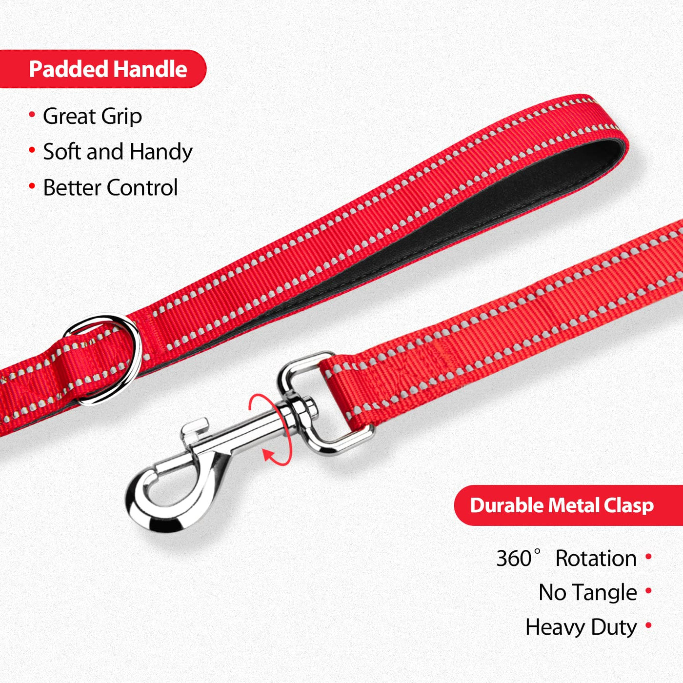 PHOEPET 5 Feet Dog Leash - Dual-Side Reflective - Soft Padded Handle - Fit for Walking, Training or Exploring Hiking, Camping (R