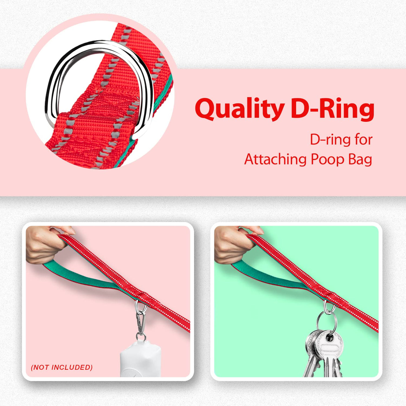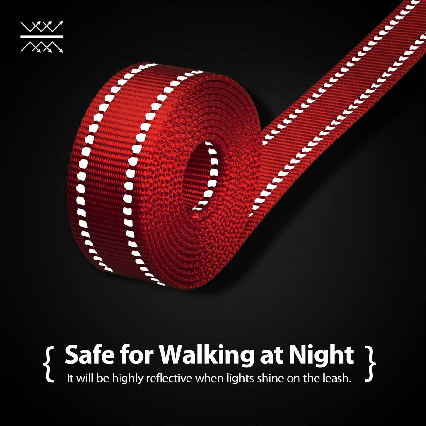 Phoepet 5 Feet Dog Leash - Dual-Side Reflective - Soft Padded Handle - Fit For Walking, Training Or Exploring Hiking, Camping(Re