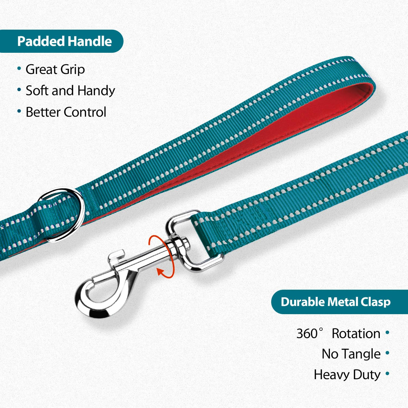 Phoepet 5 Feet Dog Leash With Comfortable Padded Handle Easy Snap Clasp - Reflective Walking Lead For Large, Medium & Small Bree