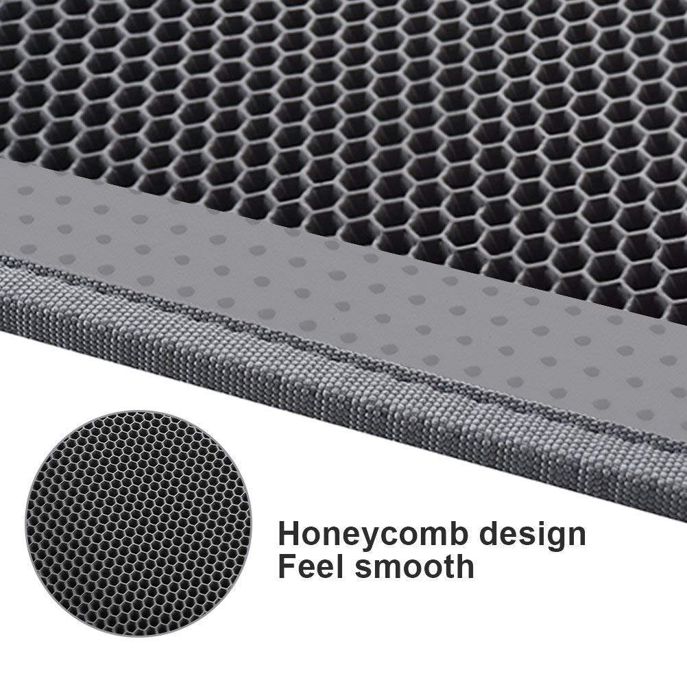 Q: What makes the Pieviev Cat Litter Mat effective in trapping litter?A: The Pieviev Cat Litter Mat features a double-layer honeycomb design that allows litter to fall through large holes into the bottom layer, effectively trapping it and preventing tracking around your home.