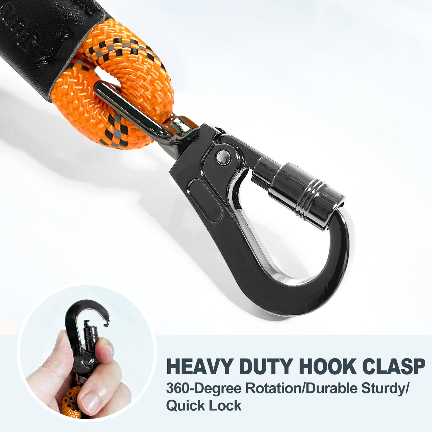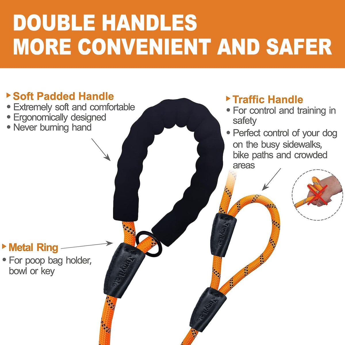 Pine Tree Tools Junyilala 6Ft Double Handles Heavy Duty Dog Leash With Comfortable Padding, Highly Reflective, Orange