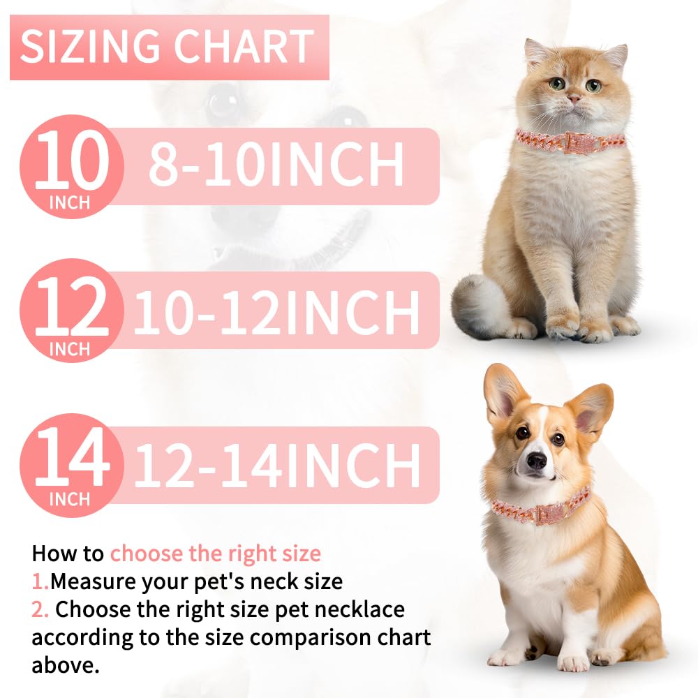 This Pet Necklace Can Be Used By Both Dogs And Cats,We Offer Three Sizes Of 10 Inch/12 Inch/14 Inch For You To Choose,Please Measure Your Pet'S Neck Carefully To Make Sure The Fit Is Right And Avoid Being Too Tight Or Too Loose,The Gold/Rose Gold Pet Chain Collars Are Perfect For A Variety Of Activities Such As Training,Walks,Trips,And Jogging,And The Exquisite Design Ensures That It'S Wear-Resistant,Rust-Resistant,And Comfortable,And It Can Make Your Pets Look Cool And Charming.