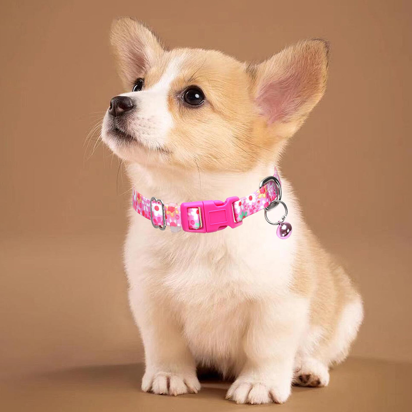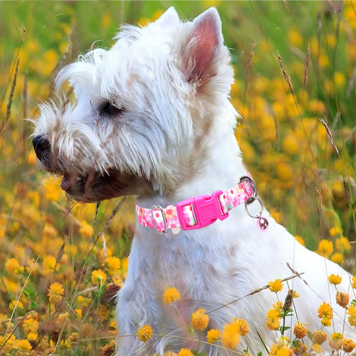 Puppy Collar With Bell, Pretty Pink Floral Girl Cat Collar Flower Tiny Dog Collars With Bells For Xs Small Pet Female Dogs Kitten Little Animal?Two Size For Small Dogs & Cats?Xs For Neck 7-9, Width 3/5''. S For Neck 10-13, Width 3/5''. Note: Please Leave Only 2 Finger Between The Collar And Pet'S Neck. ?Nice & Comfortable?The Puppy Collar With Bell Is Made Of Polyester Webbing. Super Soft. Pretty Patterns Are Printed With Heat Transfer Technology. Color Will Not Fade. Suitable For Pets To Wear For A Long Time. ?Plastic Buckle And Detachable Bell?The Small Dog Collar'S Buckle Is Made Of Abs Plastic. Sturdy And Durable. The Clasp Will Quickly Release By You. If You Don'T Like The Bell, You Can Remove It. ?Fashion, Dazzling?The Dog Collar With Bells, And With Nice Design. Make Your Pet Instantly Dazzle In A Group Of Pets.Fit Cat And Small Dogs, As Poodle, Corgi, Chihuahua, Schnauzer, Pomeranian, Shih Tzu, Teddy Bear, Yorki Or So.