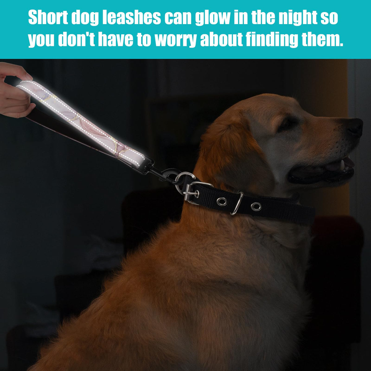 Pink Marble Nylon Short Dog Leash For Training Control - Reflective, Padded Handle For Large & Medium Dogs
