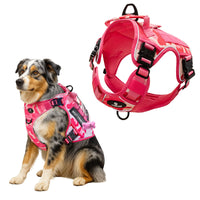 Pink No Pull Harness Vest For Medium Sized Dog With 4 Metal Buckles & Double Stitching Captain Dog - Reflective Pink Camo, Heavy
