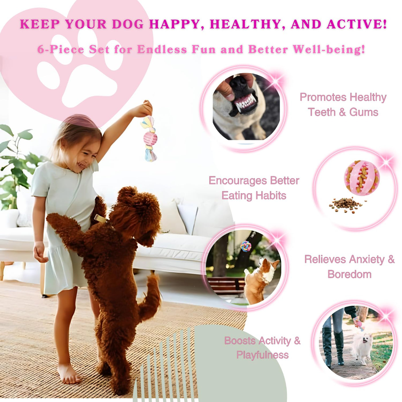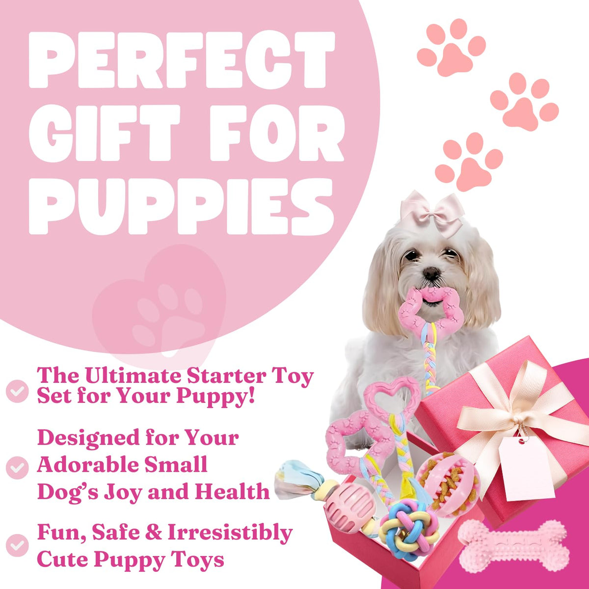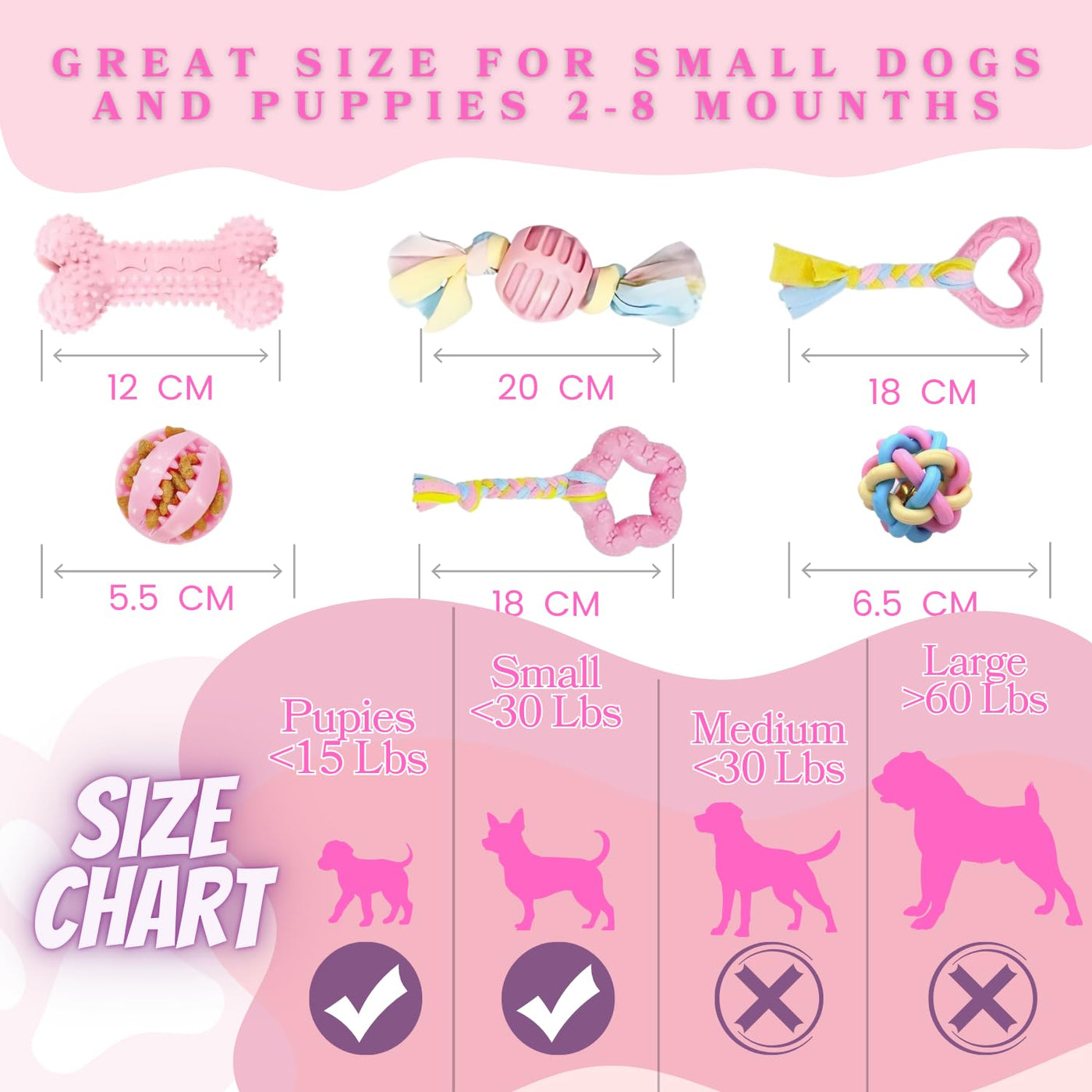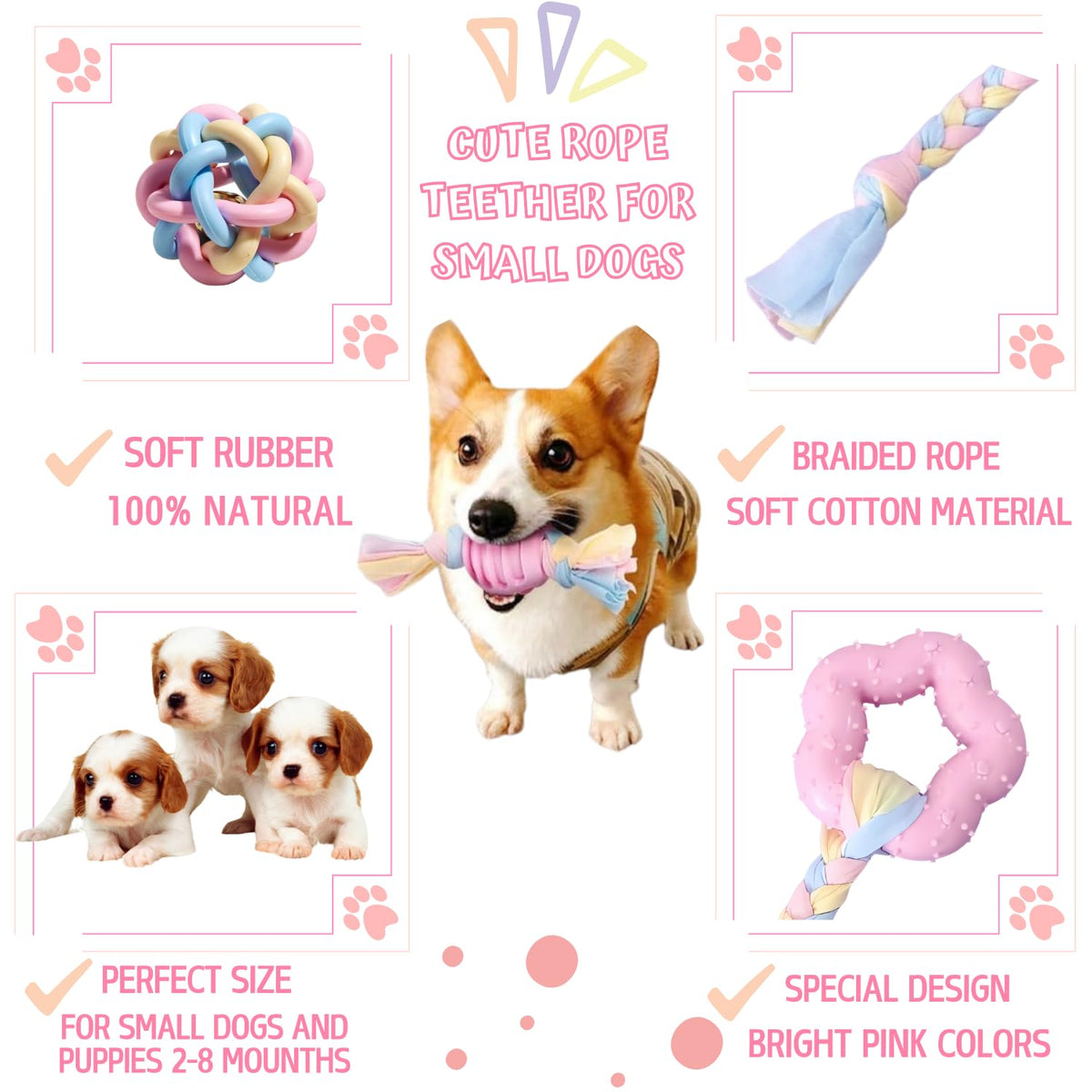 Pink Puppy Toys, 6- Pack Teething Chew Toys, Soft Durable Rubber Teething Toys For Puppies Small Breeds, Eco-Friendly, Interacti