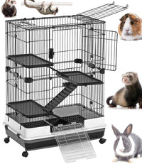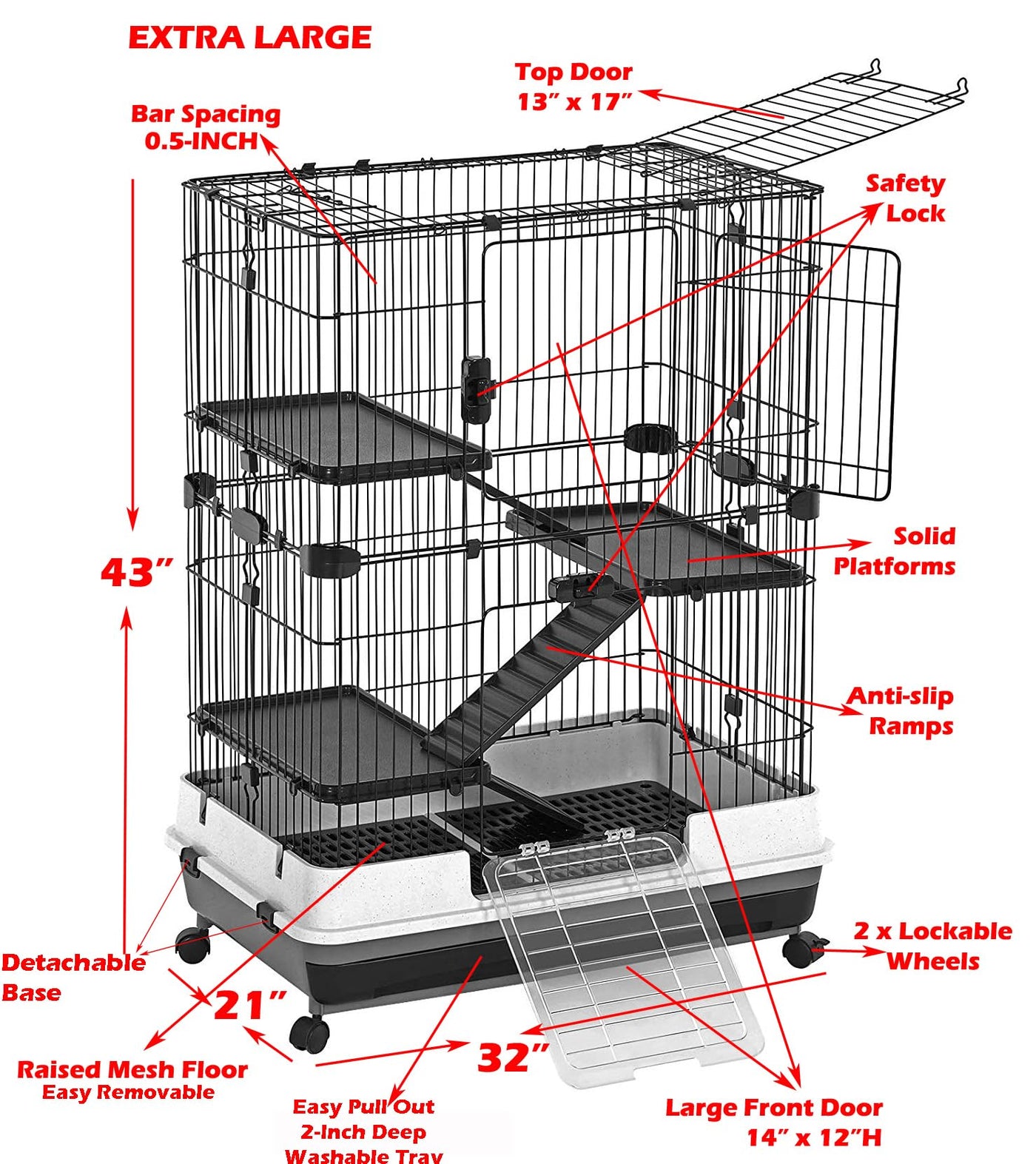 Pink X-Large Deluxe 4-Level In/Outdoor Rabbit Hutch Home Cage For Ferret Chinchilla Paw Safe Solid Platform Ramp Mesh Floor Leak