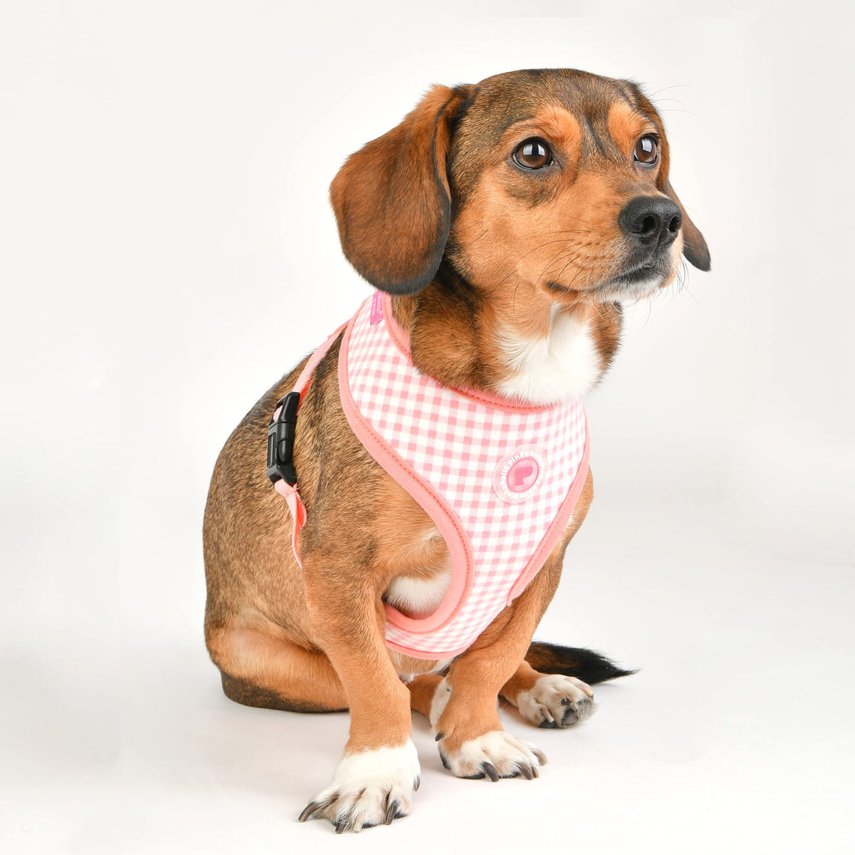 Q: What materials are used in the Pinkaholic Alaia Harness?A: The Pinkaholic Alaia Harness is made from high-quality rubber, ensuring durability and comfort for your pet. The harness features a stylish checkered pattern and solid scheme.