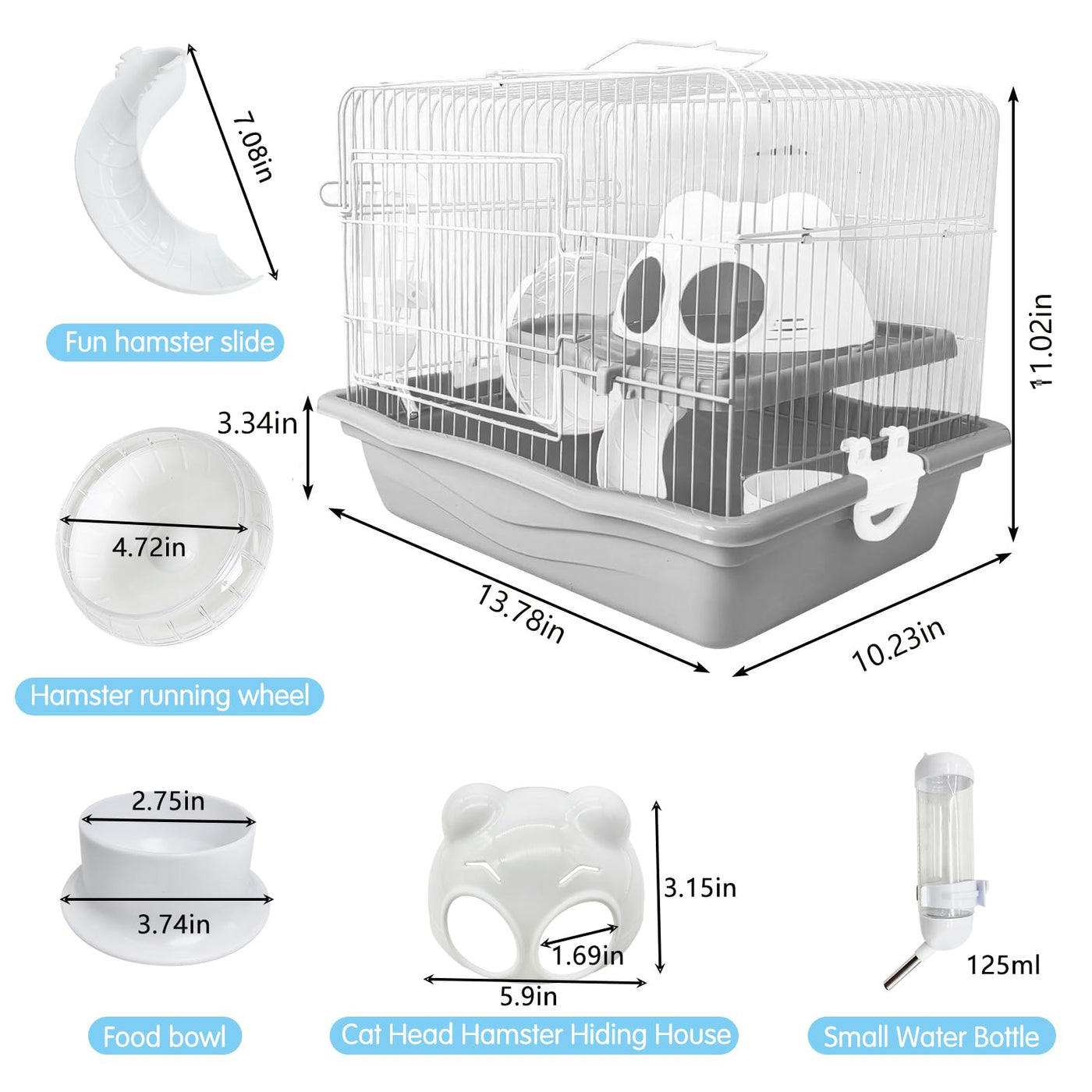 Pinvnby Dwarf Hamster Cage, Small Animal Cages, 2-Tier Travel Portable Mouse Cage Hamster Carrier With Castle House Running Exer