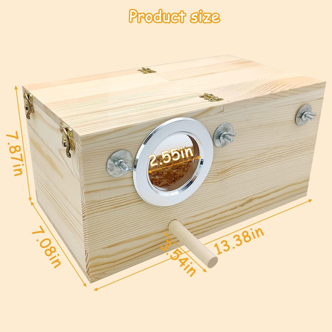 PINVNBY Large Natural Wood Parakeet Nesting Box Budgie Breeding Box Acrylic Bird Nest for Cage Transparent Panoramic for Birds,