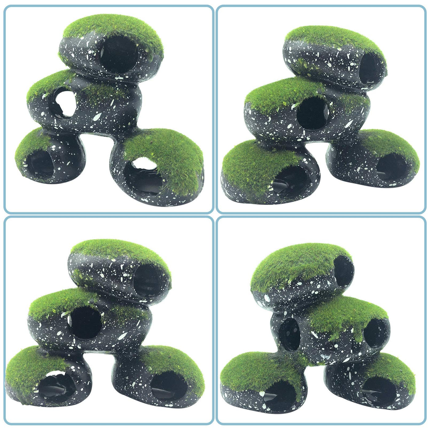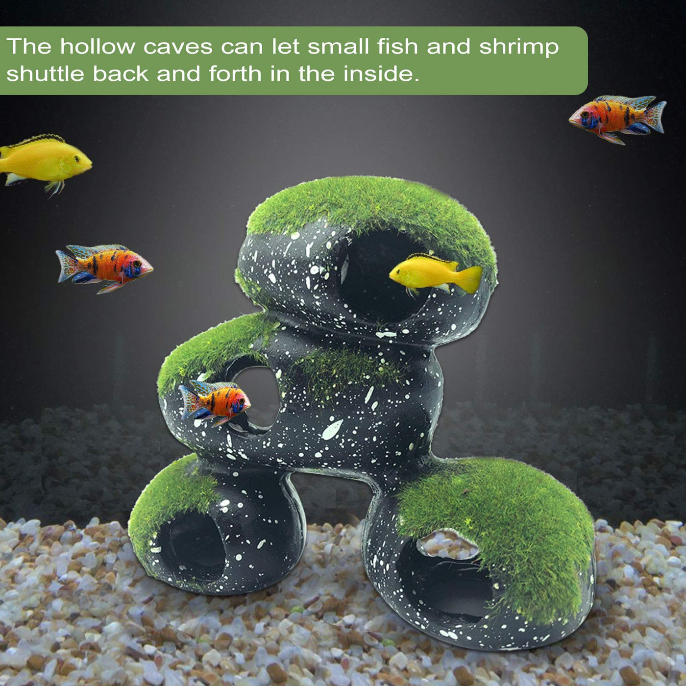 Pinvnby Stone Aquarium Hideaway Decoration Resin Cichlids Rock Decor With Artificial Moss Betta Cave Hideout Shelter Tunnel Fish Tank Ornament For Shrimp,Short Bream And Crayfish(L)