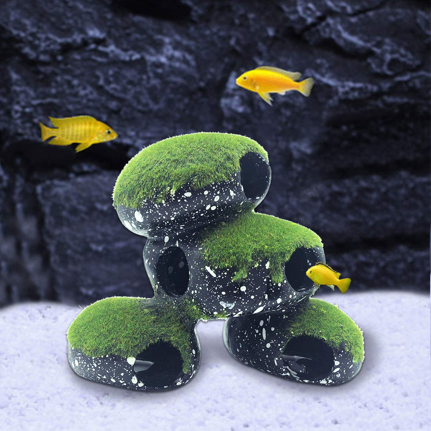 PINVNBY Aquarium Stone Hideaway Decoration Resin Cichlids Rock Decor with Artificial Moss Betta Cave Hideout Shelter Tunnel Fish Tank Ornament for shrimp,short bream and crayfish(L) Our stone caves have a flat base,can sit stably at the bottom of the fish bowl without floating on it.Hideout habitat is smooth and without any sharp edges,won't scratch your fishes.This decoration shape is exquisite and realistic,help enhance visual appeal,provides visual interest for your fish.The hollow caves can let small fish and shrimp shuttle back and forth in the inside.Provide a hideaway for your pet to hide,play,rest and breed,helps to reduce boredom and aggression. Specifications: Color:As Shown Material:Resin Size: Resin Stone Hideaway:7.5x3.1x6.1 inches/19.0x8.0x15.5 cm Package includes: 1 x Resin Stone Hideaway Cleaning Tips: Please soak for 10-15 minutes with water before applying wipe off the dust and paint smell. There is no need to clean the resin ornament too often,they won't die,rot or cause any algae problems. Note: Please allow 1-2cm error due to manual measurement.Pls make sure you do not mind before you bid. Due to the difference between different monitors,the picture may not reflect the actual color of the product.Thank you!