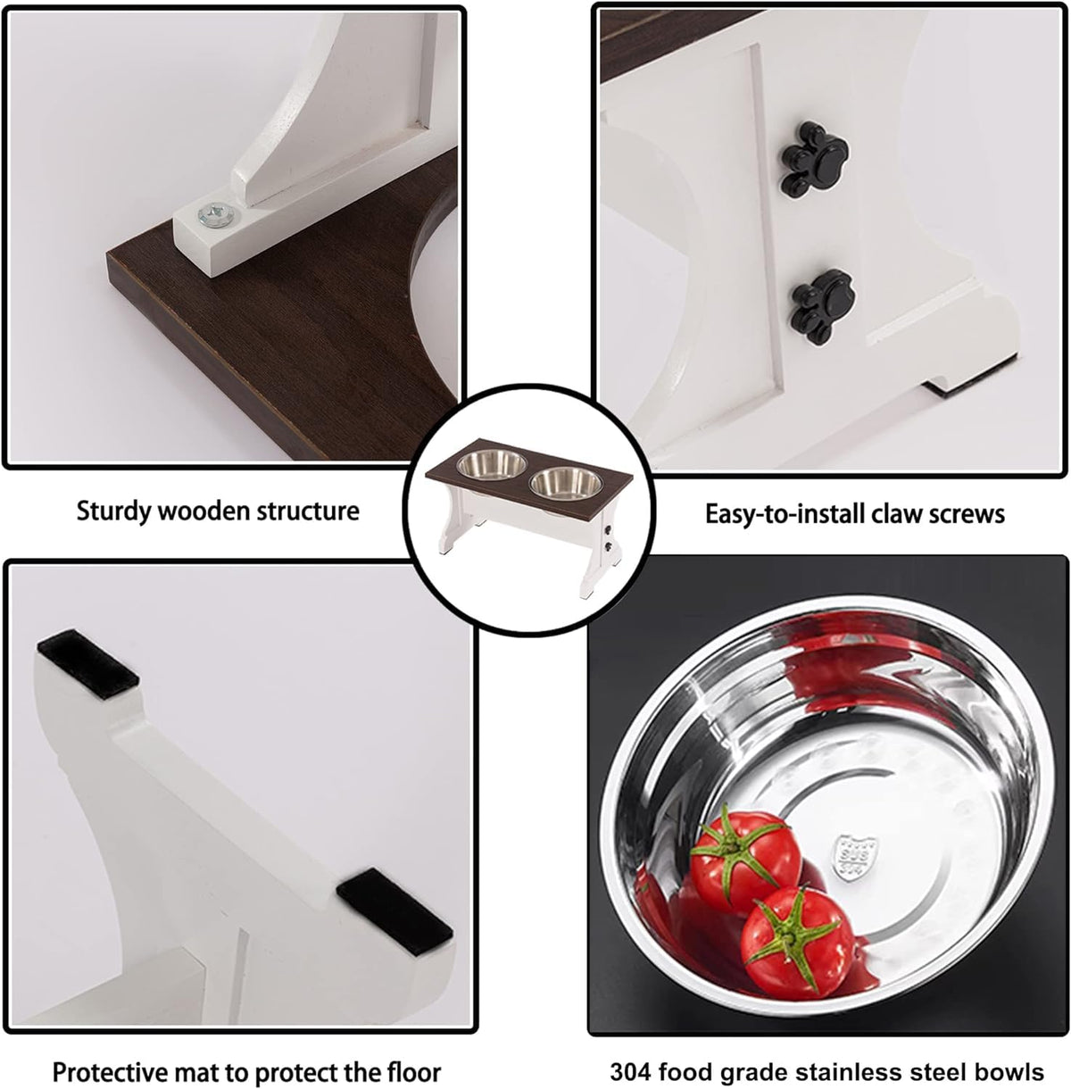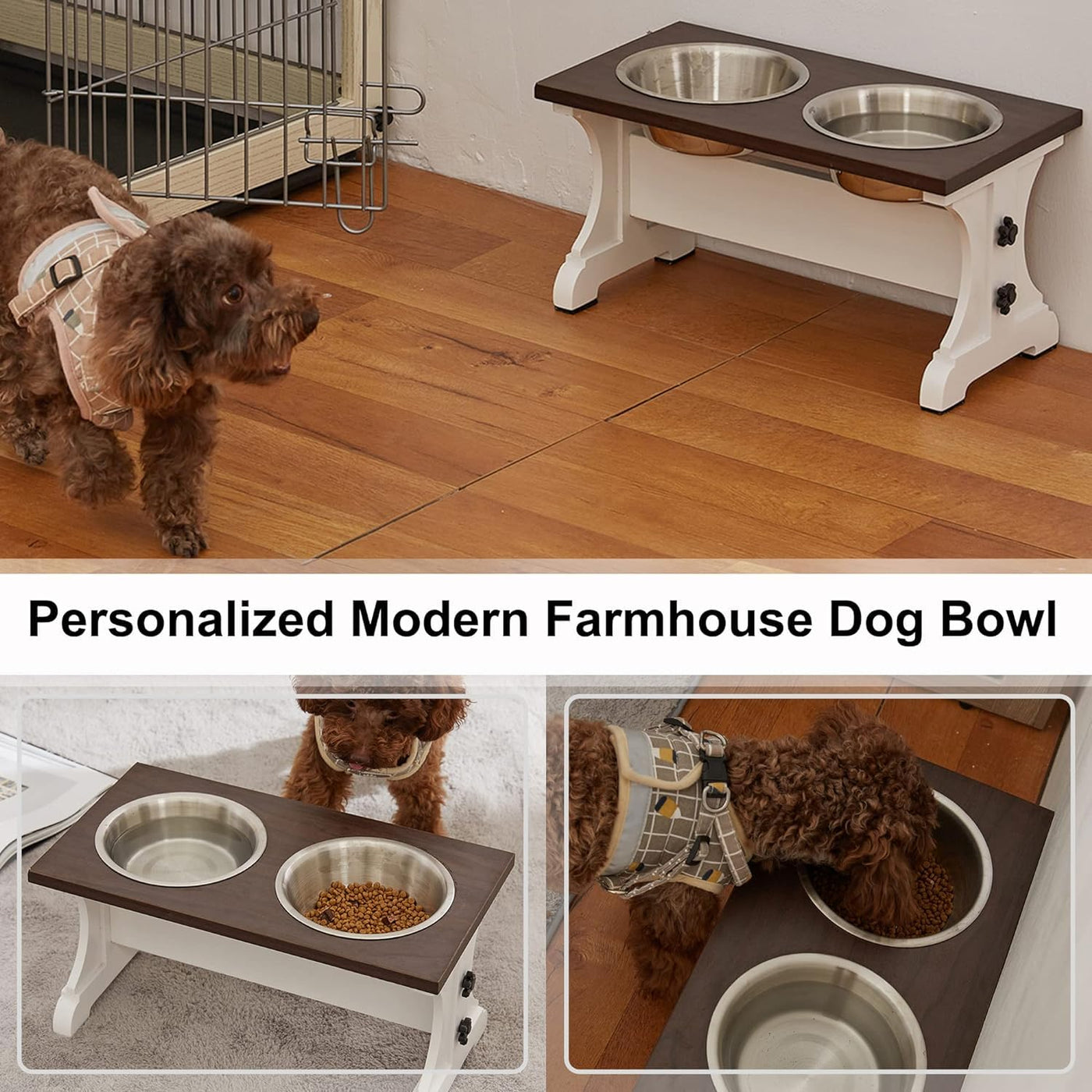 Piskyet Elevated Dog Bowls,Farmhouse Dog Bowls Stand, Raised Dog Bowl With 2 Stainless Steel Wooden Dog Bowl,3.5Cups8.5''H_30 Oz
