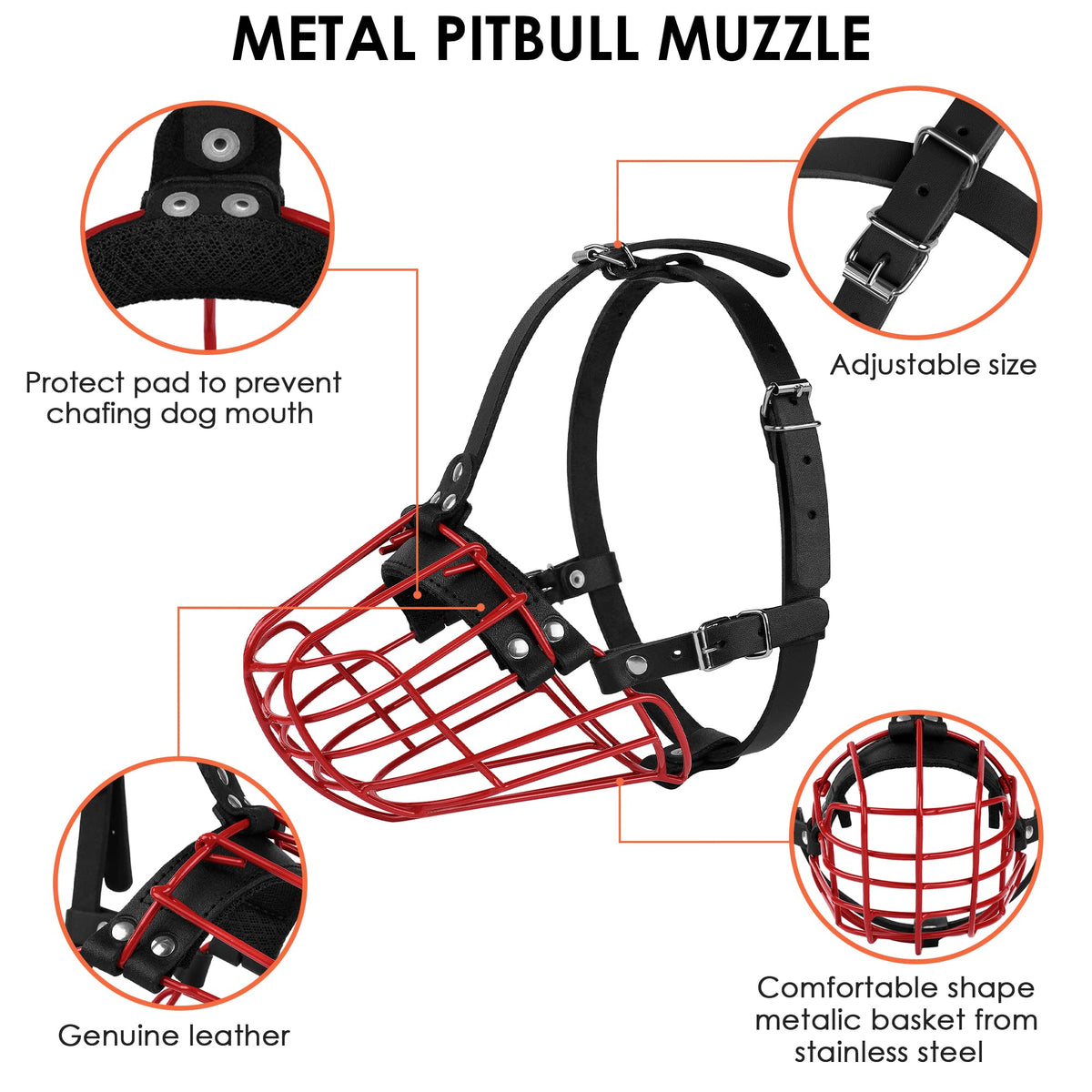 The Pitbull Muzzle Is A High-Quality And Essential Accessory For Dog Owners Looking To Effectively Manage Their Pitbull Or Other Large Breed Dogs. This Muzzle Features A Sturdy Metal Mask With A Durable Wire Basket, Providing Excellent Protection And Control. One Of The Standout Features Of This Muzzle Is Its Adjustable Design, Allowing For A Customized And Secure Fit. This Ensures Maximum Comfort For Your Dog, While Also Preventing Any Unwanted Biting Or Chewing Behavior. The Adjustable Straps Are Made Of Genuine Leather, And What Sets This Muzzle Apart Is The Availability Of Different Colors For The Leather Straps, Adding A Touch Of Personalization And Style. Constructed With Durability In Mind, This Muzzle Is Built To Withstand The Robust Nature Of Pitbulls And Large Dogs. It Effectively Restricts Biting And Chewing, Preventing Any Potential Harm To Themselves Or Others. The Secure Wire Basket Allow For Sufficient Airflow, Ensuring That Your Dog Can Breathe Comfortably, Pant Naturally, And Enjoy Proper Ventilation During Activities Or Walks. The Thoughtful Design Allows Your Dog To Open Their Mouth, Lick Their Lips, And Drink Water While Wearing The Muzzle, Providing A Humane And Practical Solution For Controlling Their Behavior Without Compromising Their Well-Being. With Its Durable Construction, Adjustable Leather Straps, Breathable Wire Basket, And Suitability For Large Dogs, The Pitbull Muzzle Is A Reliable Choice For Responsible Pet Owners. It Provides Both You And Your Dog With The Peace Of Mind You Need During Walks, Training Sessions, Or Situations Where Additional Control And Safety Are Required.