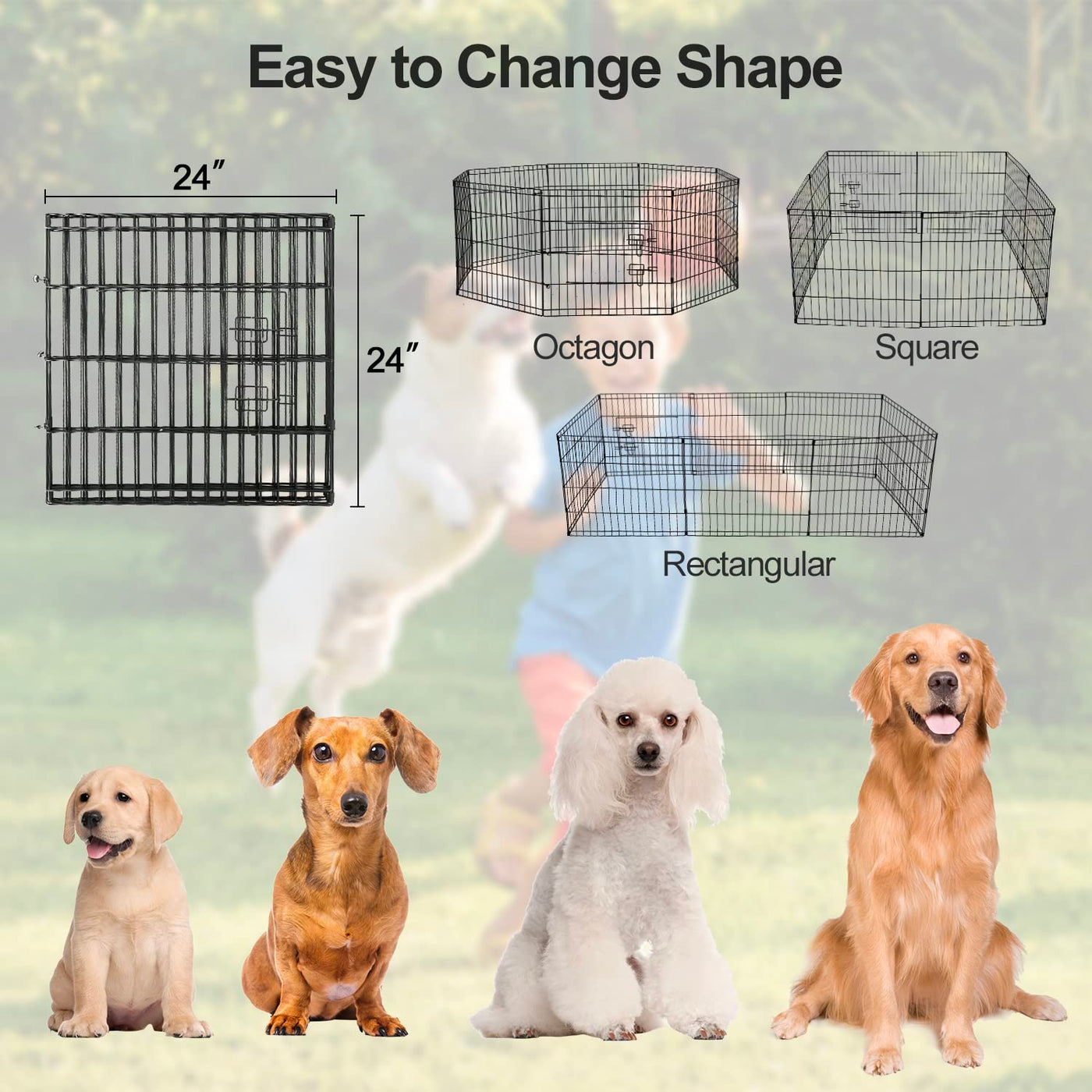 Q: Can I modify the shape of the PJYuCien Dog Playpen?A: Yes, the design allows you to change the shape according to your needs. You can configure it into rectangles, squares, or octagons.