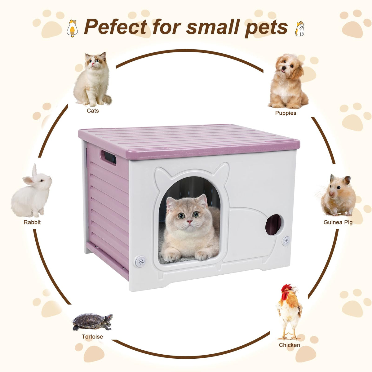 Plastic Cat House For Indoor Outdoor, Weatherproof Outside Cat House For Feral Cat, Stackable Cat Shelter With Plush Cushion (Pi