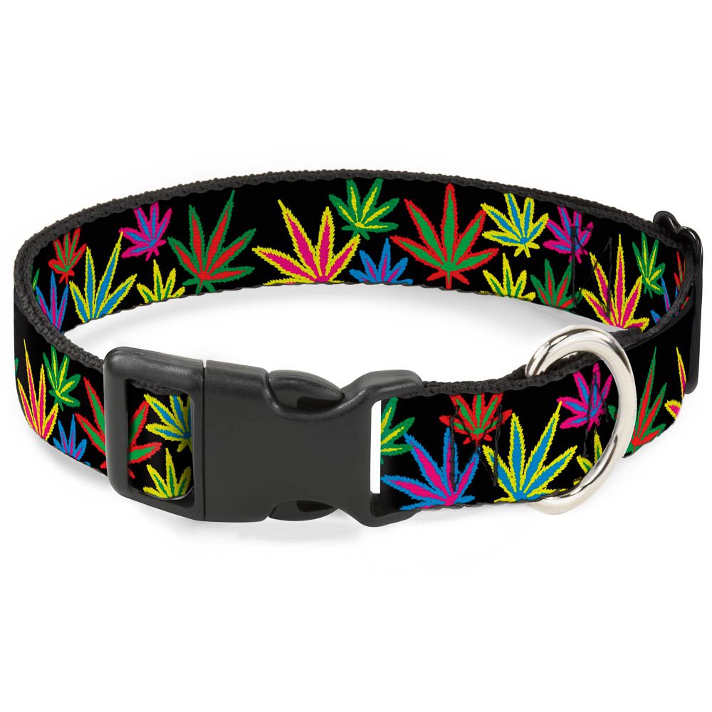 Plastic Clip Collar - Multi Marijuana Leaves Black Multi Color - Narrow-Small 6-9''