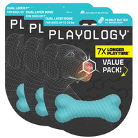 Playology Dual Layer Bone | Engaging All Natural Peanut Butter Scented Dog Toys, Value 3-Pack | Blue Bone For Small Dogs Up To 2