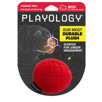 Making Pets Lives Better Through Meaningful Innovation. Playology Plush Squeaky Ball Dog Toy - Engaging All Natural Beef Scented Dog Toy, For Medium Dogs - Squeak, Chew, Toss, Fetch, And Play!