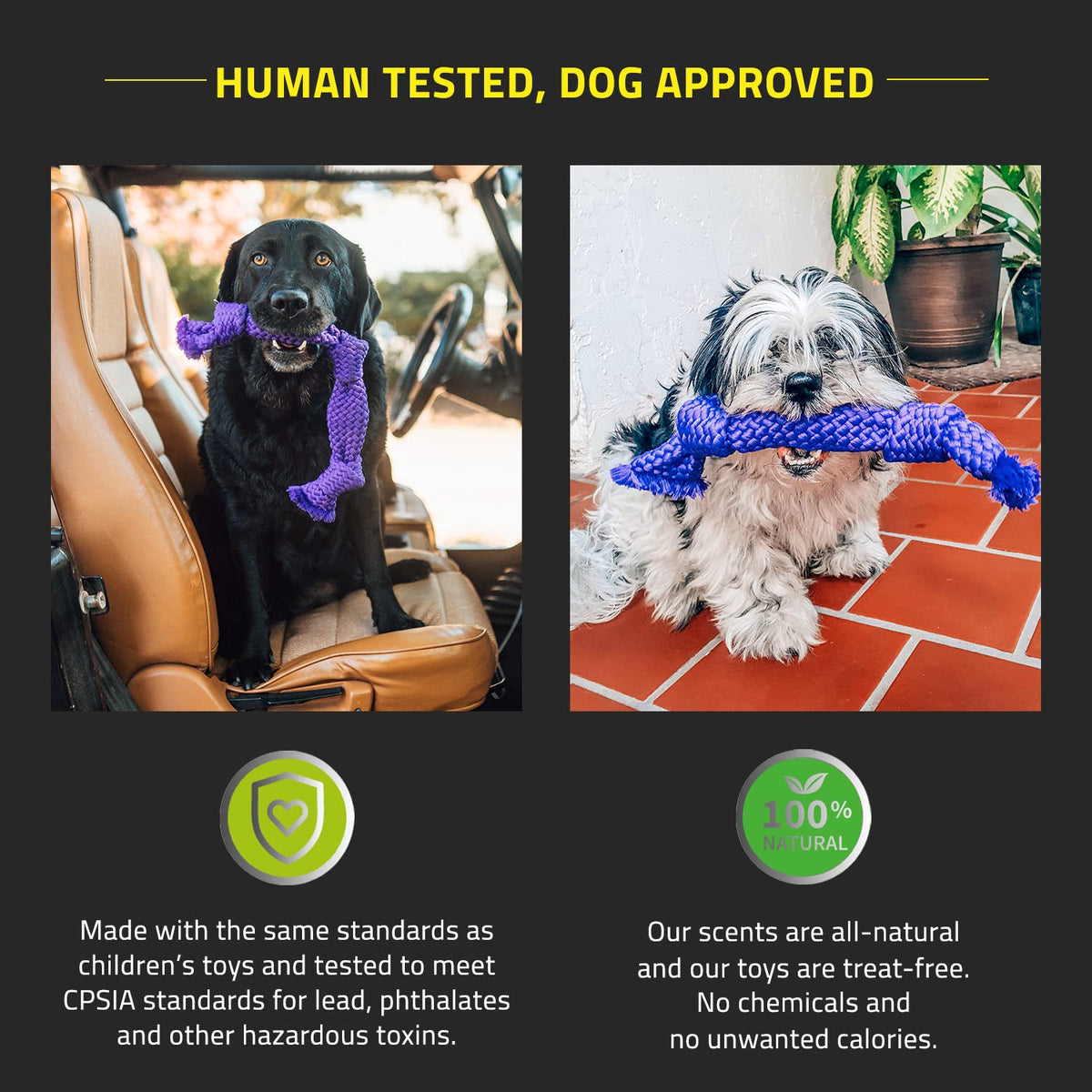DENTAL ROPE - The perfect rope toy for your senior dog Made from safe durable slobber-wicking dri-tech fibers Engaging crinkle and squeaker inside DESIgNED FOR SENIOR DOgS - Playology Silver combines our engaging all-natural scents with softer materials for more comfortable chewing so your dog can keep playing even as they (and their teeth) age MADE WITH ENcAPSIScENT TEcHNOLOgY - Dogs crave ScENT We embed the all-natural scents that dogs love directly into the material of each and every toy As your dog chews scent particles are released to keep them happy and playing MADE FROM cHILD SAFE MATERIALS - We love our dogs like children All Playology toys are tested to meet US government human child safety standards for lead phthalates BPA and other toxins deemed hazardous EASY TO cLEAN - Dirt and sand trapped on the surface of a toy can grind down your pupAs teeth All Playology toys are easy to clean Plus our Encapsiscent Technology means you wonAt wash away the all-natural scent they love