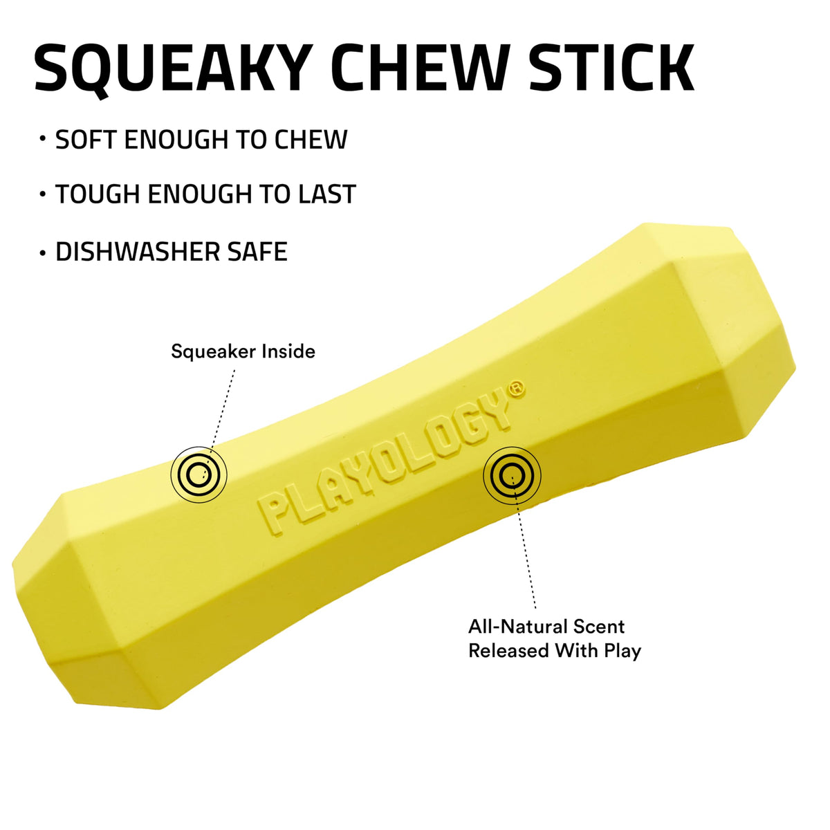 MEET THE SQUEAKY CHEW STICK BY PLAYOLOGY: Featuring a fun squeaky sound and enticing all-natural Chicken scent thanks to our Encapsiscent Technology this is the dog stick toy your pup