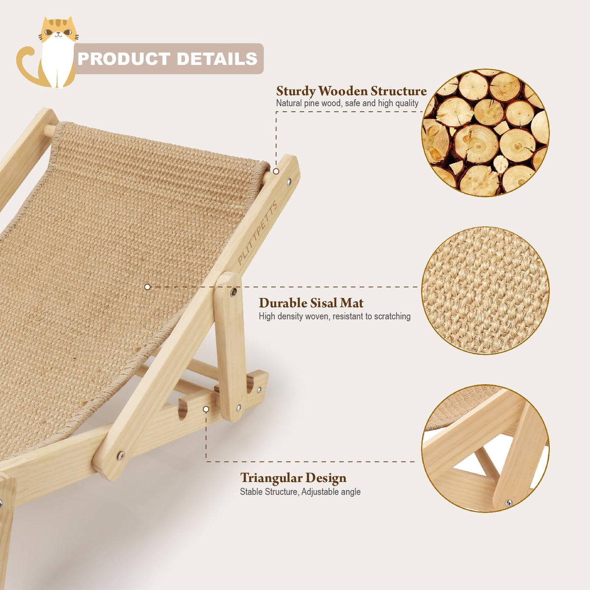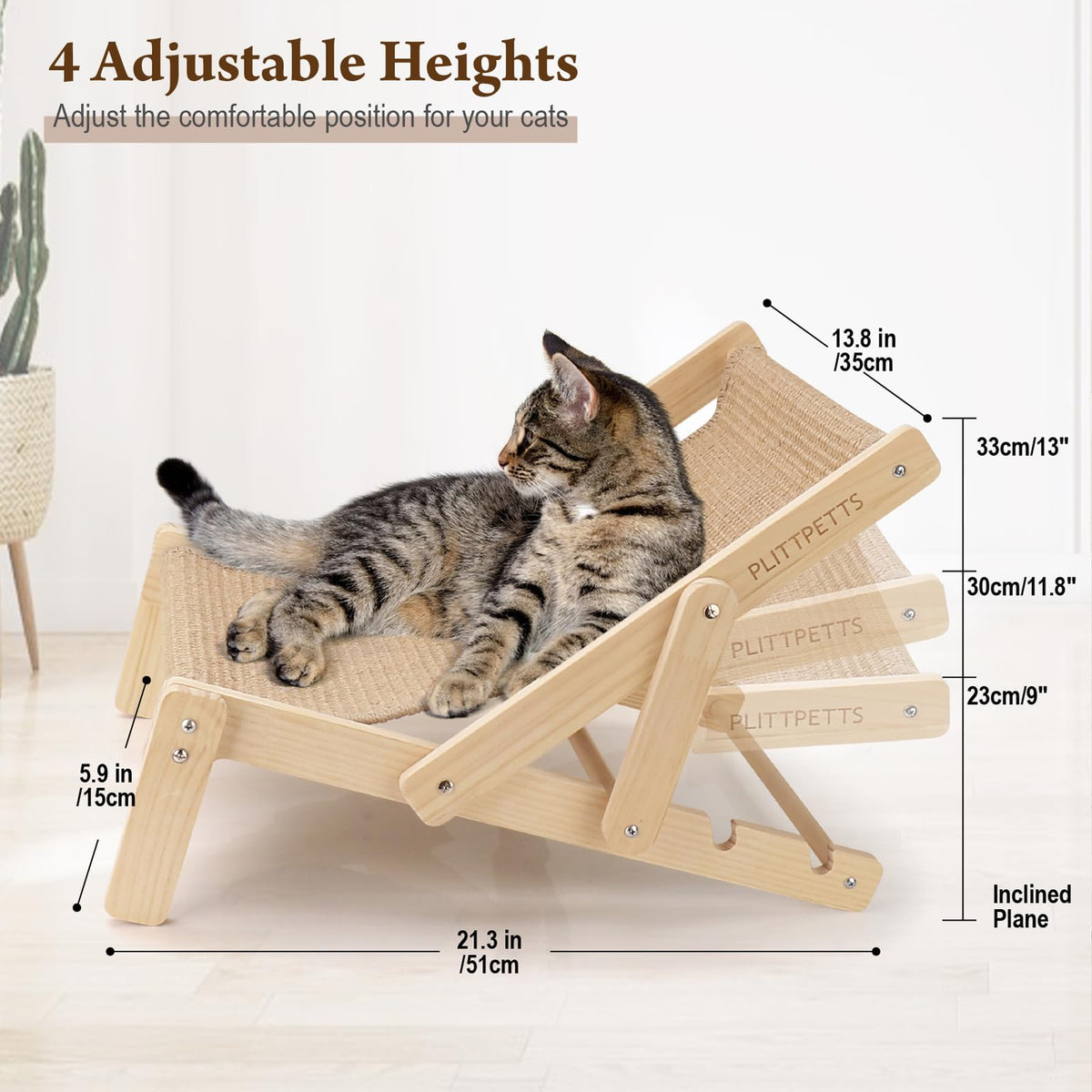 Indulge Your Feline Friend With This Versatile Cat Lounger That Doubles As A Scratching Post. Crafted From Sturdy Wood And Featuring A Cozy Sisal Mat, This Lounger Offers Your Cat A Comfortable Spot To Relax, Stretch, And Groom. The Adjustable Design Allows You To Set It At Four Different Heights, Accommodating Cats Of Different Sizes. As Your Cat Scratches The Sisal Mat, It Helps Trim Their Nails And Satisfy Their Natural Scratching Instincts. This Lounger Is A Practical And Stylish Addition To Any Cat-Friendly Home, Providing Your Furry Companion With A Dedicated Space To Unwind And Engage In Their Favorite Activities. 4-Angle Adjustable Heights - Plittpetts Sisal Cat Chair Offers Four Adjustable Heights , Anging From 13 To A Gentle Slope. You Can Adjust The Comfortable Position For Your Cats, Allowing Your Feline Friend'S Diverse Needs, As Scratching, Resting, Sleeping Or Playing. 2 In 1 Design Features - Cats Will Enjoy Using It For Lounging On And For Their Nails. The Cat Chairs Not Only Used As Cat Scratchers For Indoor Cats But Also Doubles As A Hammock, Enabling Your Cat To Scratch, Rest, Providing Your Furry Friend With A Dedicated Space To Unwind And Engage In Their Favorite Activities.