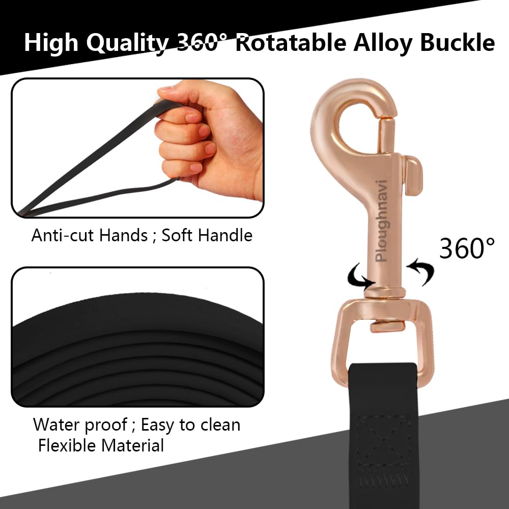 Ploughnavi Working Dog Leash, Waterproof Lead For Tracking Training, Odor-Proof Long Line For Puppy, Medium And Large Dogs (Blac