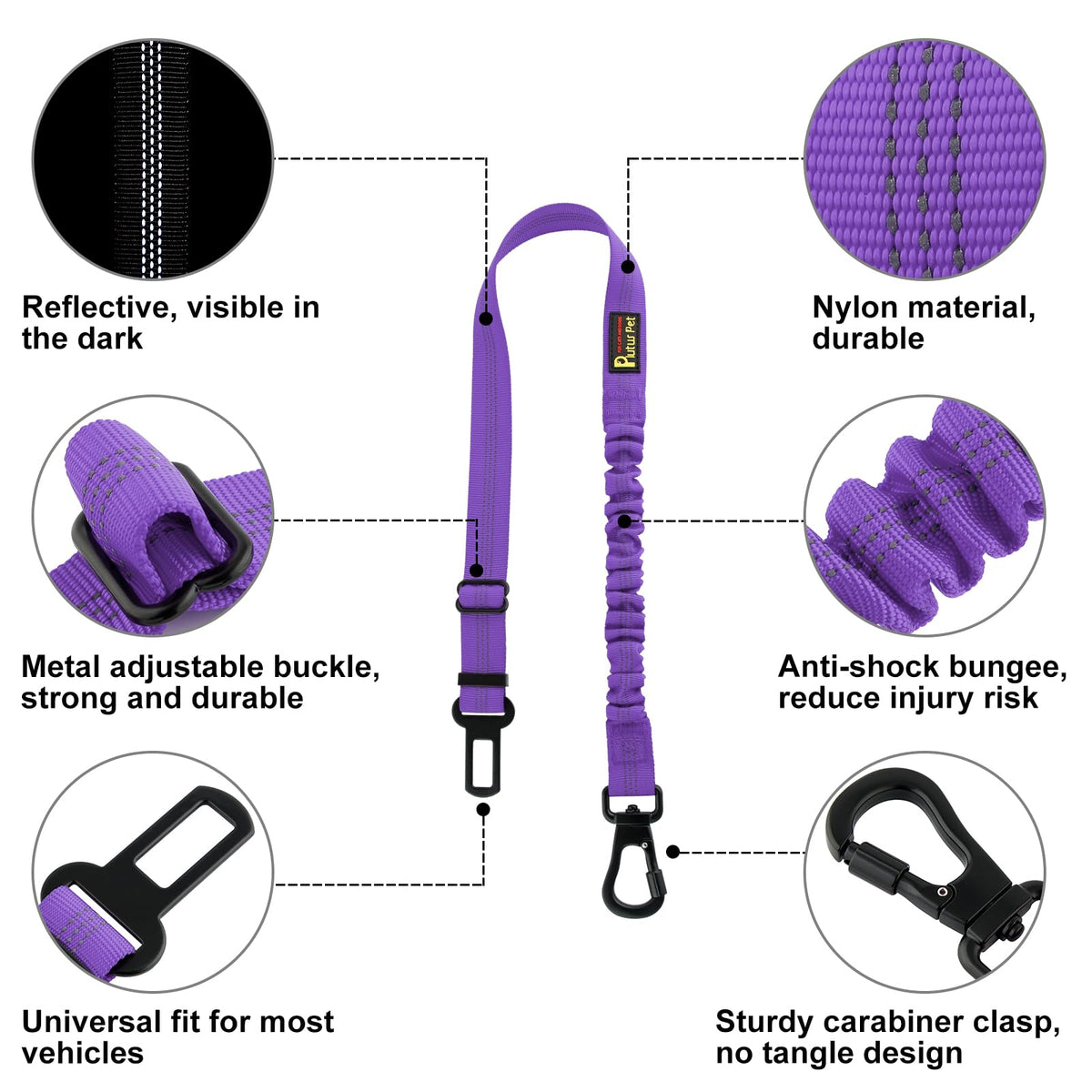 Plutus Pet Dog Seat Belt for Car, Adjustable Dog Car Harness with Carabiner Clip, Reflective Safety Dog Seatbelt Leash with Elas