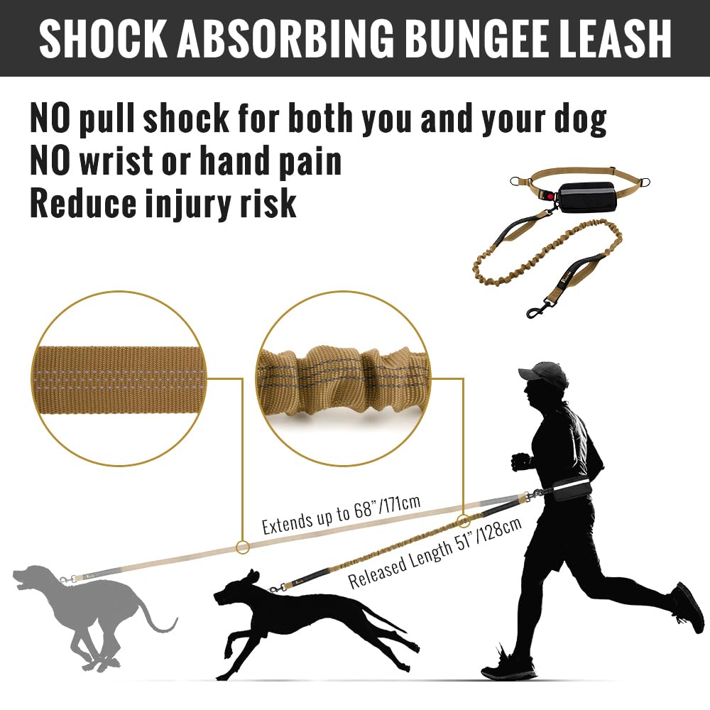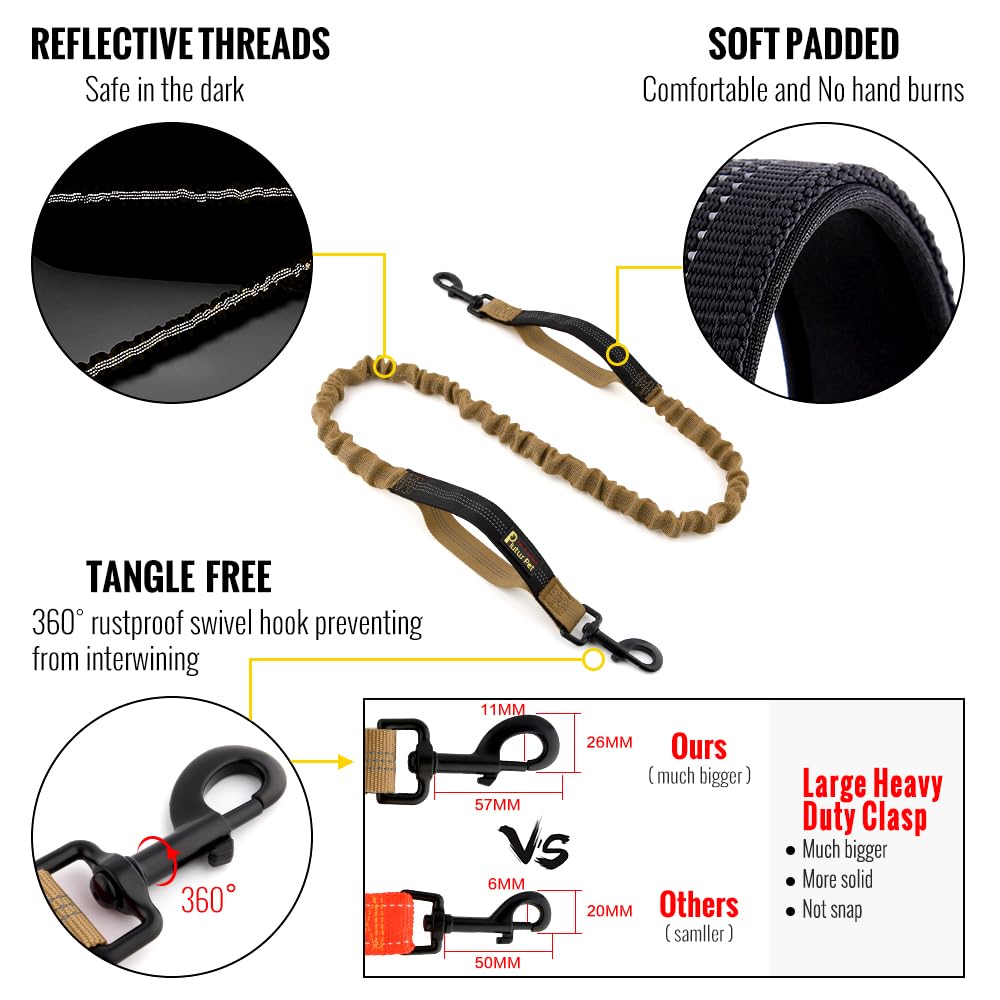 Plutus Pet Hands Free Dual Handle Retractable Bungee Leash With Reflective Stitches, Adjustable Waist Leash For Dog Walking, Run