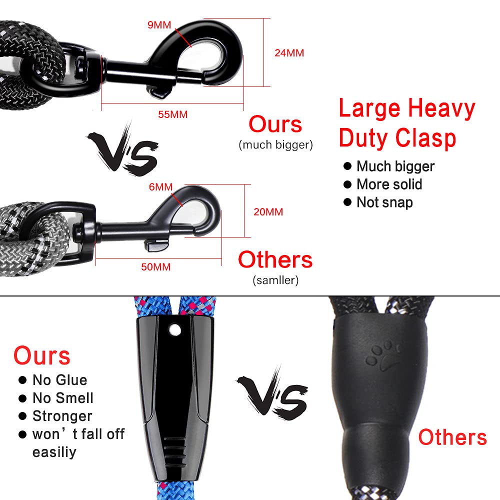 Q: What materials are used in the leash and how durable is it?A: The leash is made from high-quality nylon, featuring a strong mountain climbing rope design and a heavy-duty clasp, making it both durable and lightweight for everyday use.