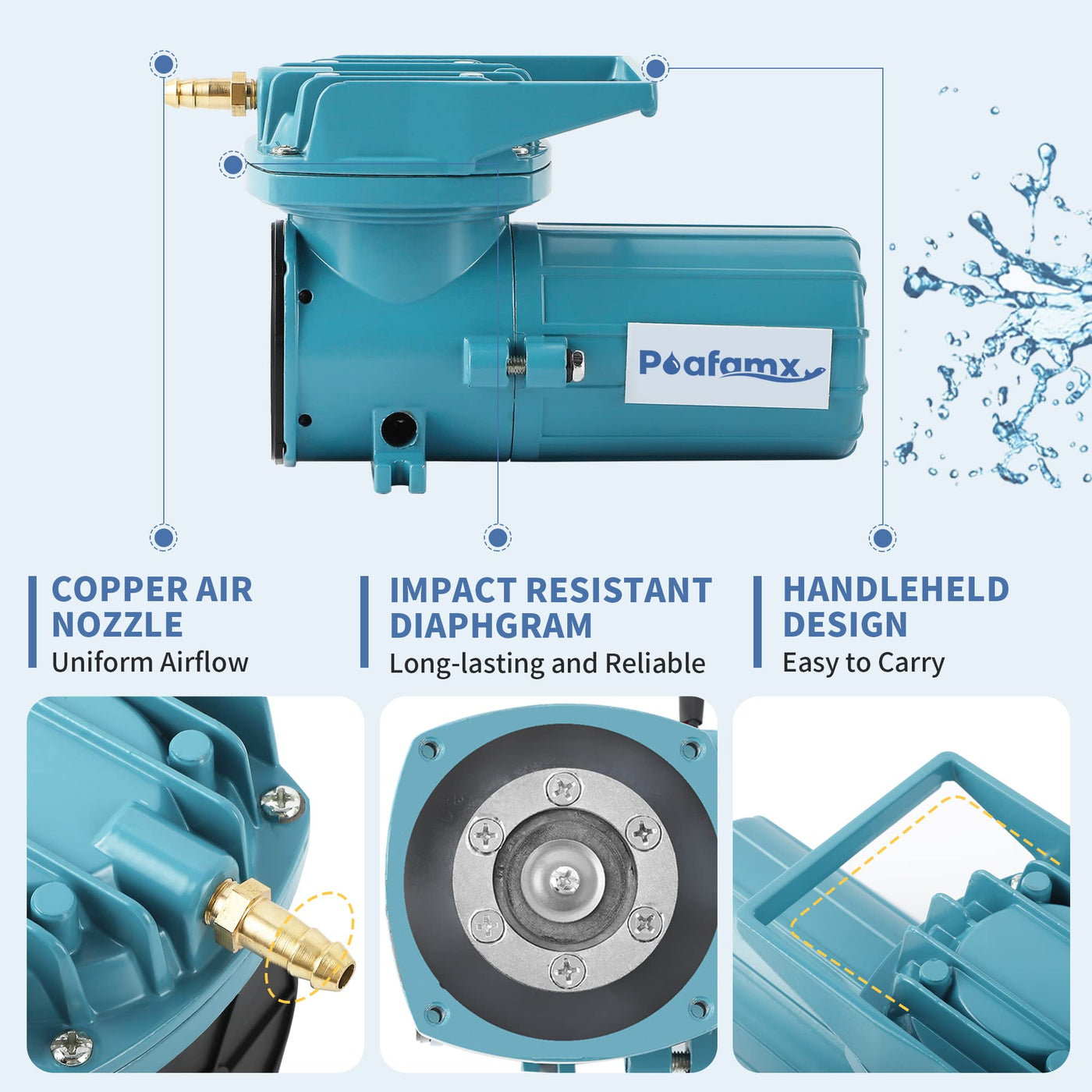 Poafamx Air Pump 60W 80L/min Oxygen Pump for Aquarium Fish Pond Battery Powered Portable AIR Aerator for Transporting Outdoor Fi