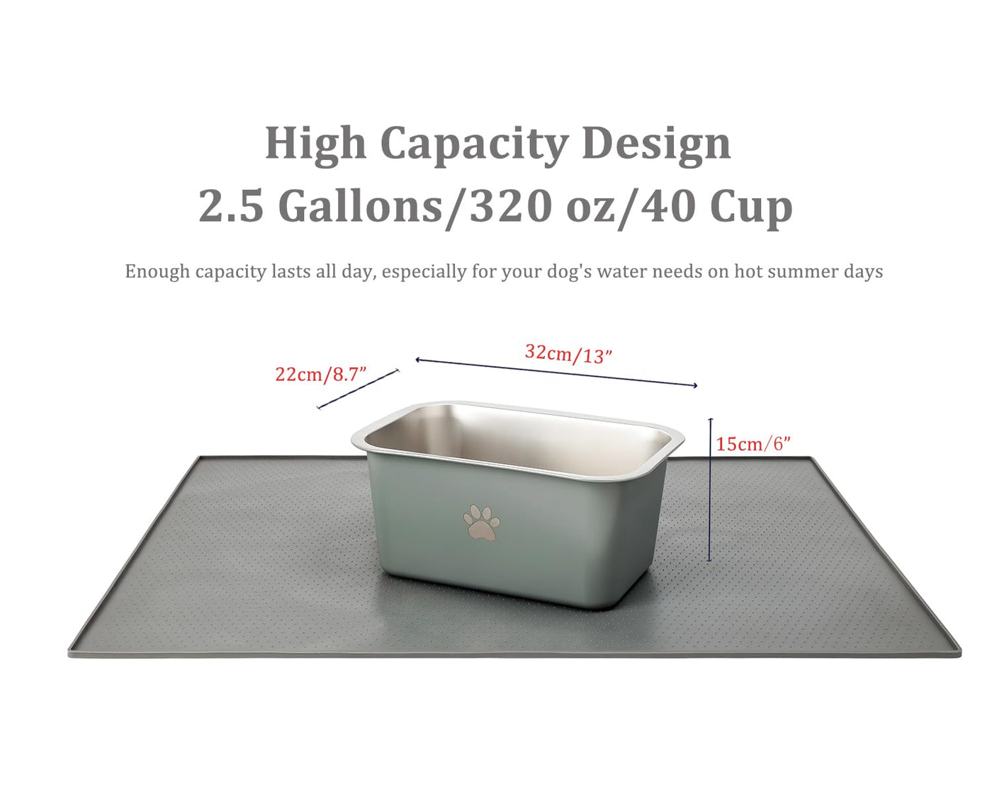 Podinor 2.5 Gallons 40 Cup Non Slip Stainless Steel Large Dog Water Bowls, Outdoor Metal Dog Bowls Extra Large Breed, High Capac