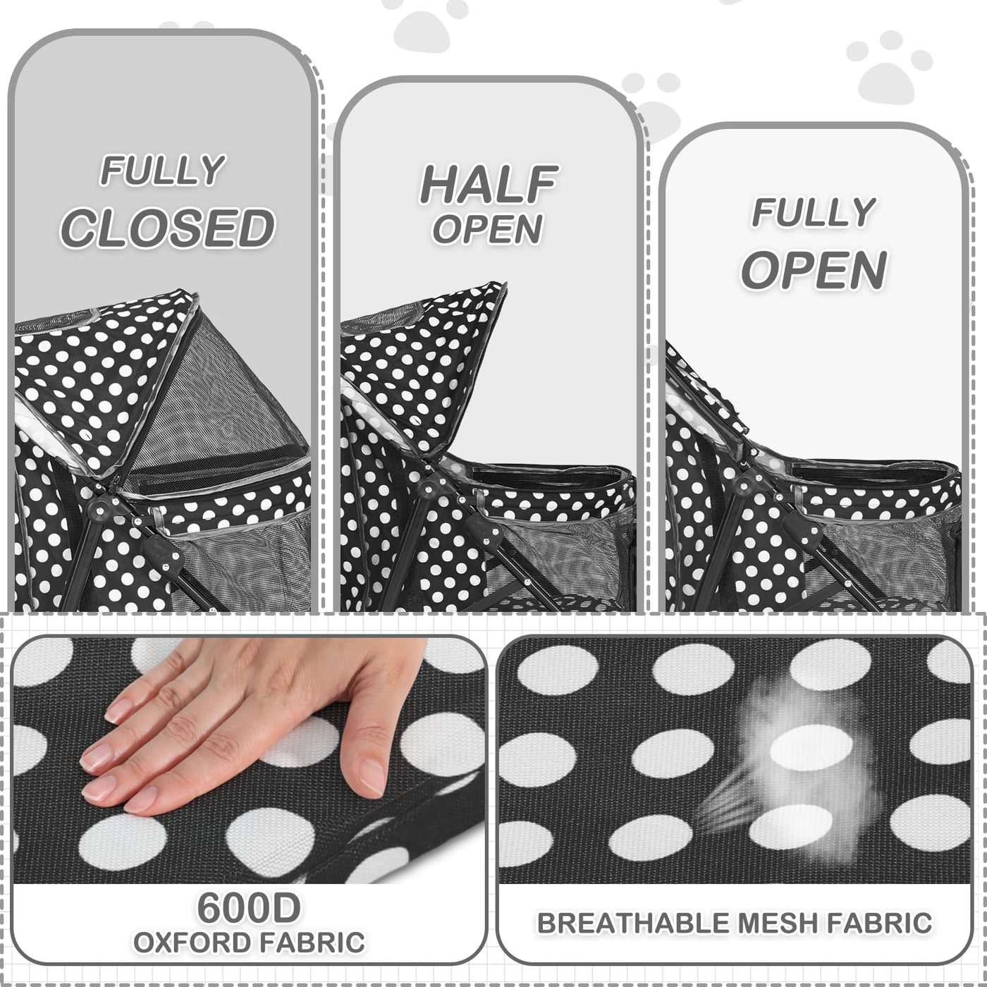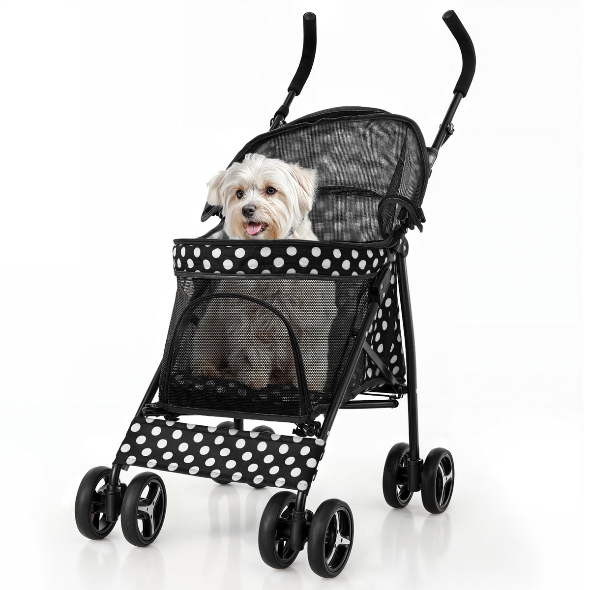 The Polias Dog Stroller In Charming Hot Pink Polka Dots Combines Style And Practicality For Small And Medium Dogs Or Cats. Designed For Convenience, This Easy-Fold Pet Stroller Collapses Into An Umbrella Shape For Compact Storage And Portability. The 4-Wheel Dog Stroller Ensures Smooth, Stable Rides On Sidewalks, Parks, Or Uneven Terrain, Offering Versatility For Daily Outings.With Visible Mesh Windows, This Stroller For Small Dogs Provides Excellent Ventilation While Keeping Your Pet Secure. A Spacious Storage Bag Accommodates Essentials Like Treats, Leashes, Or Toys, Making It Perfect For Errands Or Travel. Lightweight Yet Durable, This Pet Stroller For Dogs And Cats Guarantees Comfort And Reliability For Your Furry Companion.