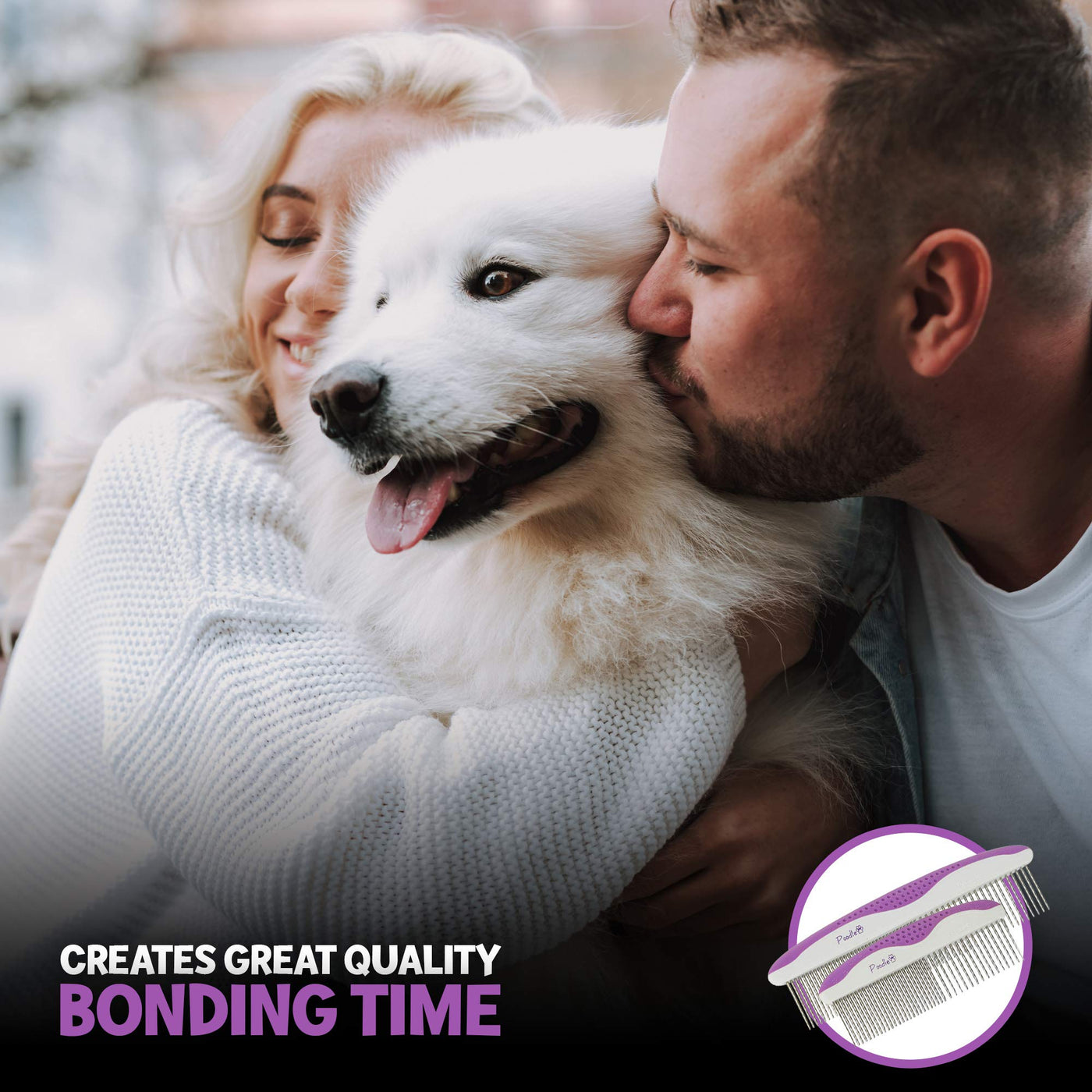 Poodle Pet Dog Combs For Grooming | 2 Pack | Stainless Steel Teeth Easily Remove Dirt | Proper Care Prevents Knots And Mats For Long And Short Haired Pets |Anti-Slip Comfort Grip Handle| Purple