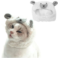 POPETPOP Soft Cotton Cat Lamb Hat: Adjustable Cute Sheep Hat for Small Dogs and Cats - Plush Pet Costume for Halloween, Christma