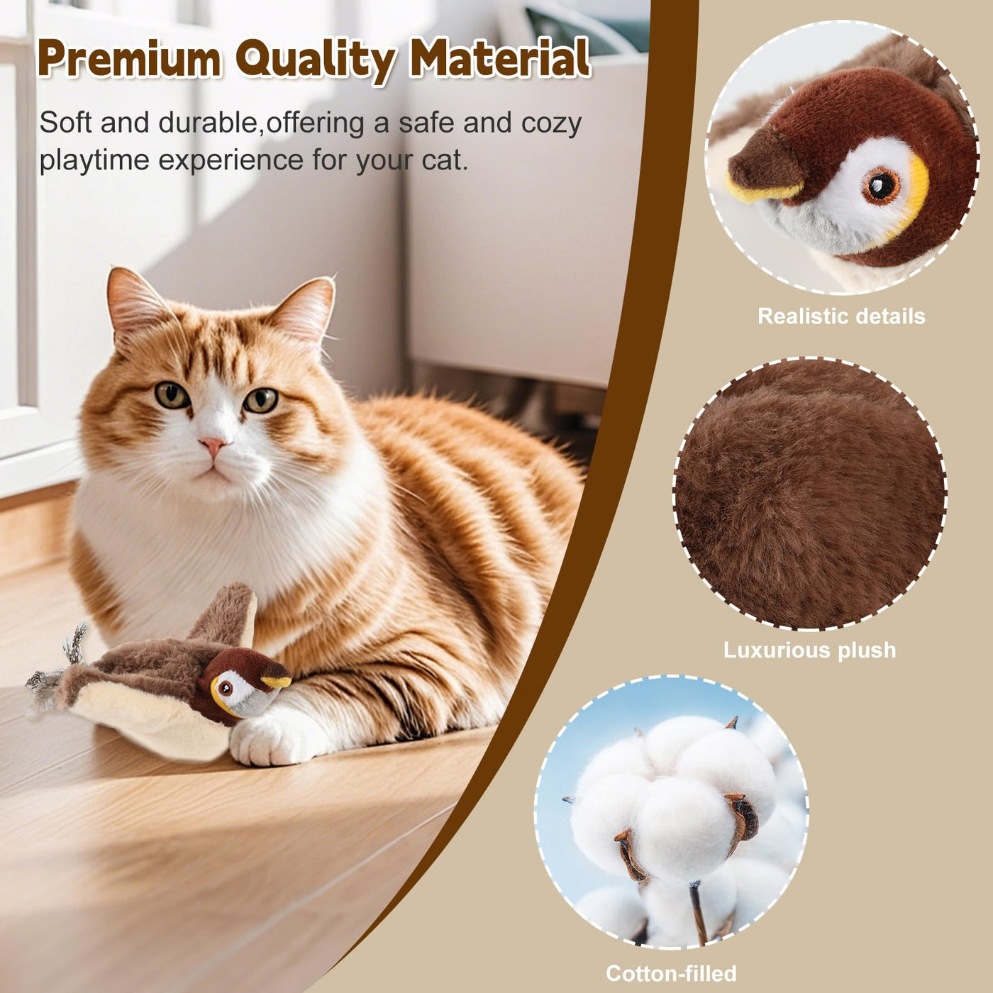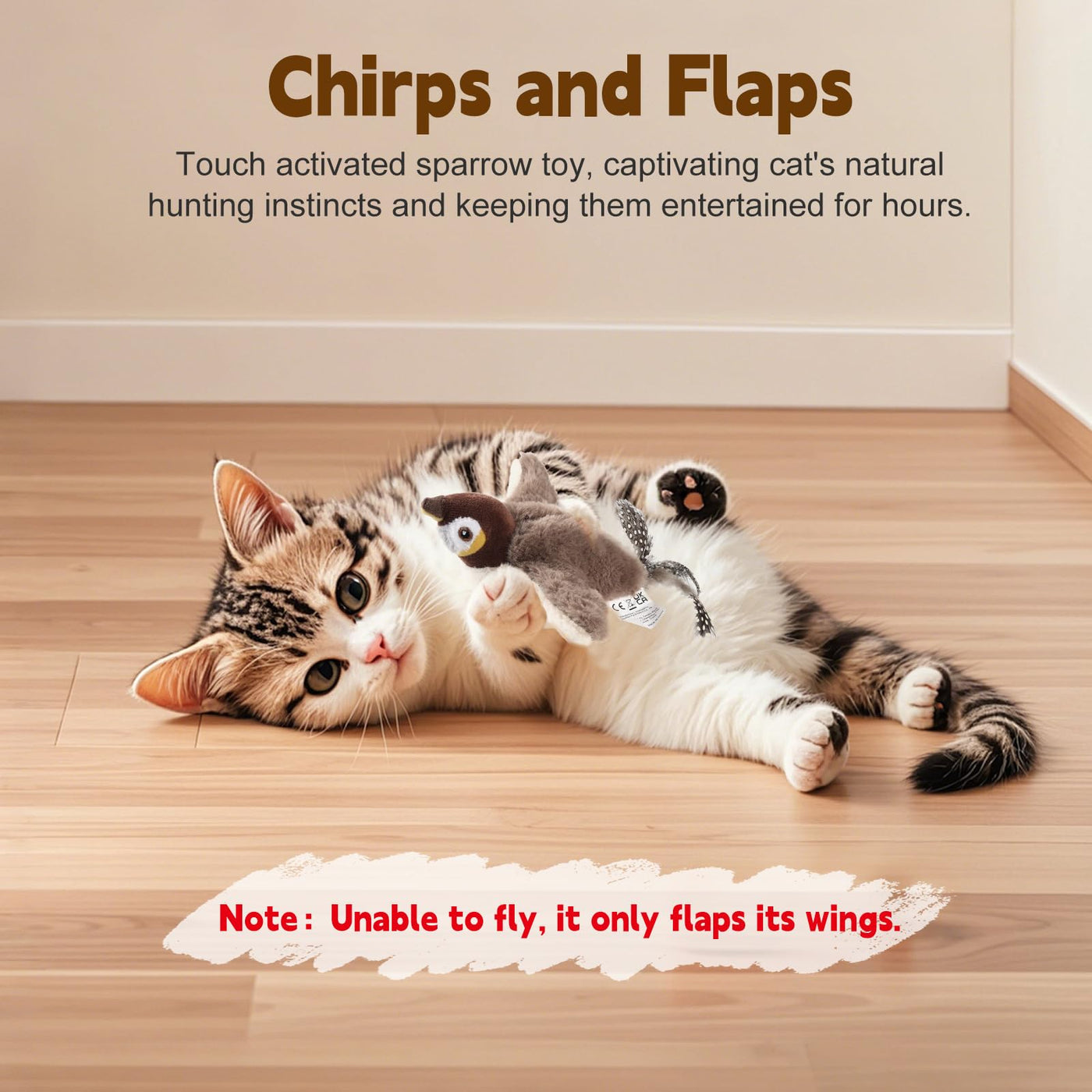 Interactive Electric Flapping Bird Toy For Cats - Rechargeable, Washable & Irresistible! Keep Your Cat Entertained For Hours With This Realistic Flying Bird Toy! Is Your Feline Friend Bored With Ordinary Toys? Our Flappy Bird Toy Is Designed To Trigger Your Cats Natural Hunting Instincts With Life-Like Fluttering Motions And Engaging Play That Keeps Them Active, Happy, And Mentally Stimulated. Why Your Cat Will Love This Chirping Bird Toy: Realistic Flapping Action - The Wings Mimic A Real Birds Movements, Encouraging Pouncing, Chasing, And Playful Attacks. Usb Rechargeable - No More Wasting Money On Disposable Batteries! A Single Charge Provides Up To 2 Hours Of Continuous Playtime. Easy To Clean & Hygienic - The Body Is Wipeable, And The Wings Are Detachable & Machine-Washable, Making It Simple To Keep Fresh. Quiet Motor - Wont Disturb You While Keeping Your Cat Entertained For Hours. Give Your Cat The Thrill Of The Hunt-Without The Mess Of Real Feathers! Order Now And Watch Your Kitty Leap, Bat, And Pounce With This Moving Cat Joy!