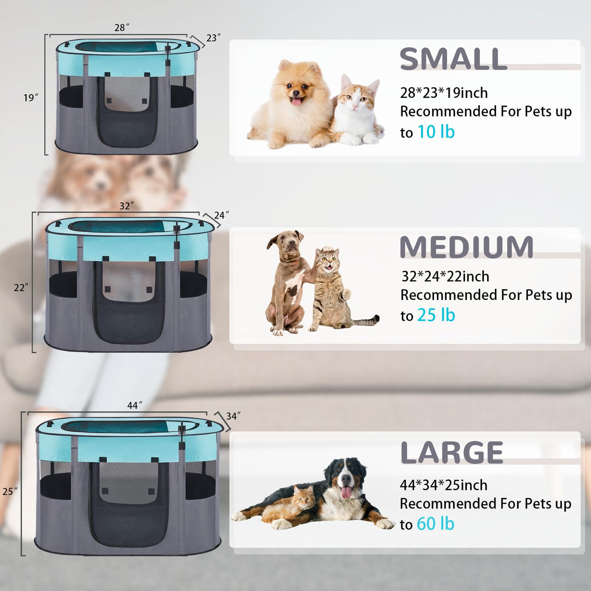 Portable Dog Cat Playpen with Waterproof Pad,Collapsible Pet Puppy Kitten Crate,Foldable Small Animals Kennel Cage for Indoor Ou
