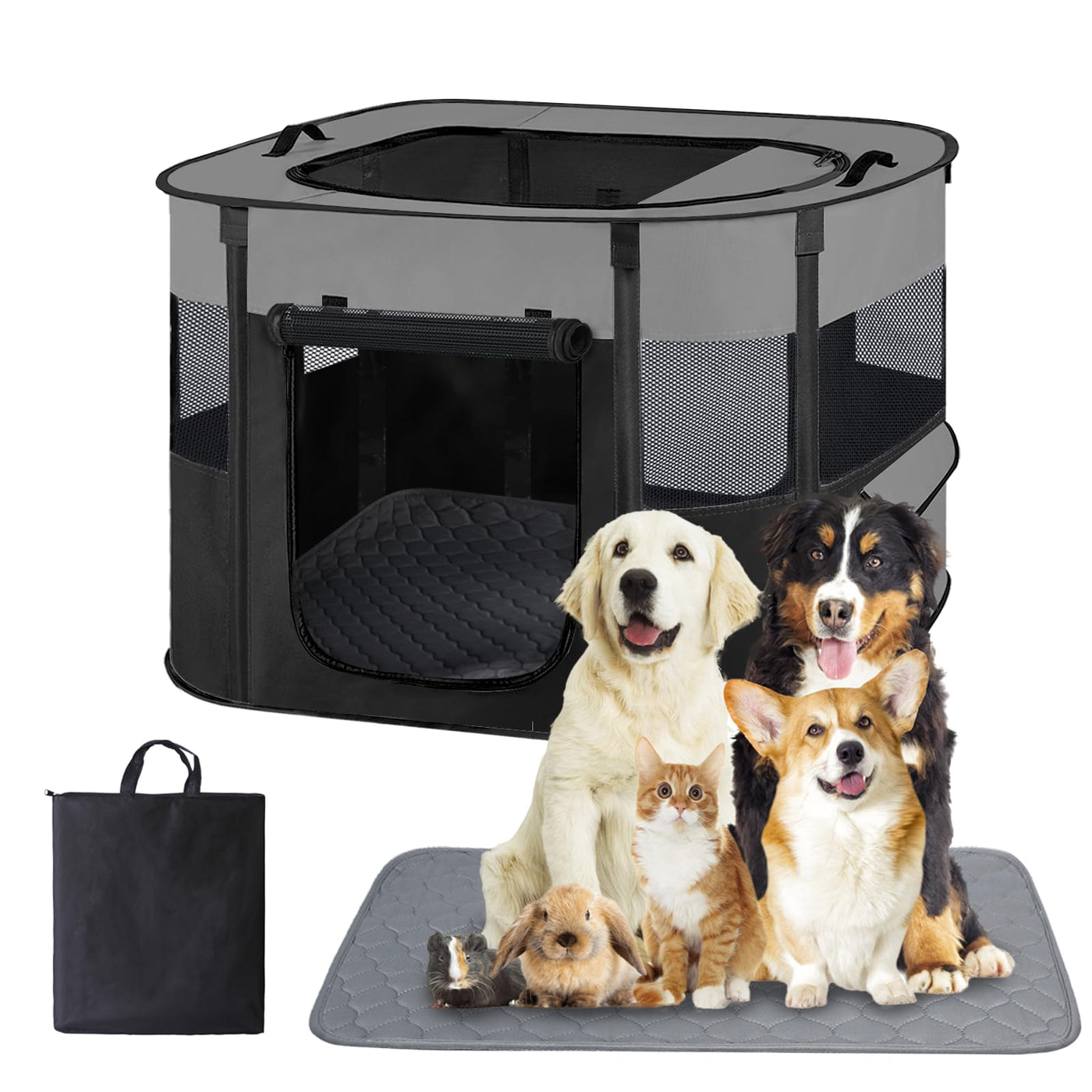 Portable Dog Playpen,Foldable Dog Cat Kennel Tent Cage,Dog Cat Rabbit Crates for Travel Water-Resistant Breathable Shade Cover,I