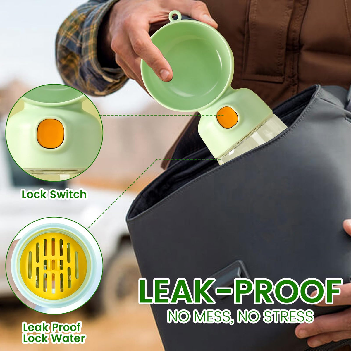 Portable Dog Water Bottle, Large-Capacity Travel Water Dispenser For Cats And Small Dogs - Green