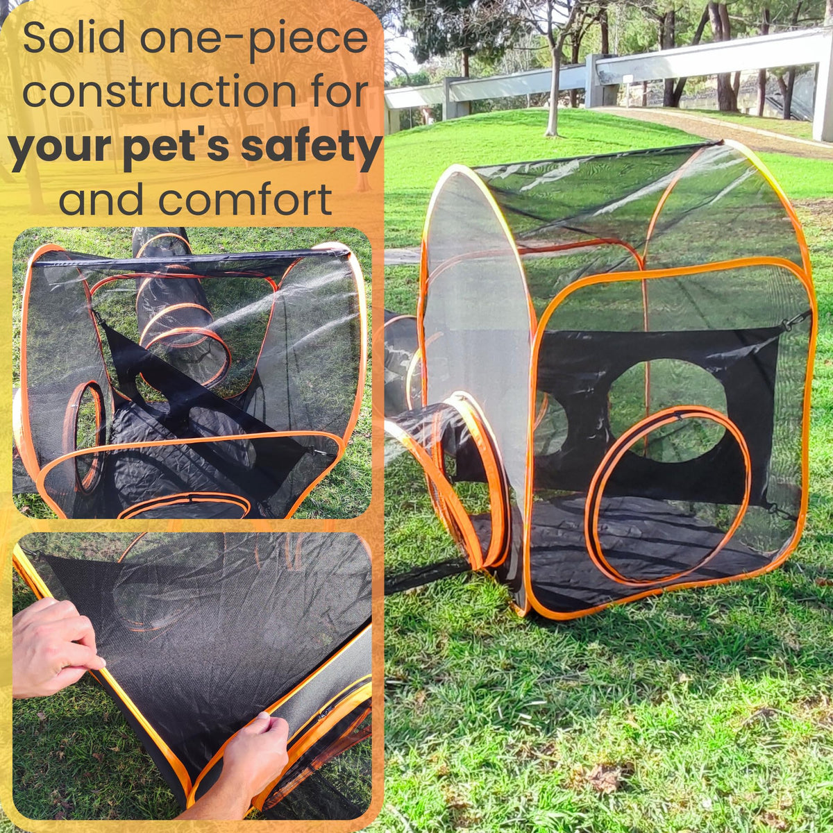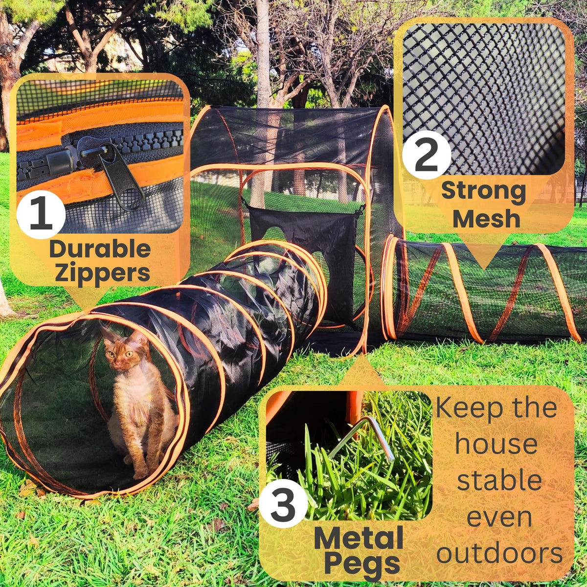 Create The Perfect Outdoor Haven For Your Feline With Our Large Portable Outdoor Cat Enclosure. This Mesh Cat Playhouse Features A Sturdy Cat Cube, Interactive Play Run, And A Spacious Tunnel, Providing Endless Fun And Exercise For Your Indoor Cats. The Cage-Free Outdoor Enclosure Ensures Your Pet Can Explore Safely While Enjoying Fresh Air. Easy To Assemble And Transport, This Outdoor Cat Playpen Is Ideal For Patios, Gardens, And Balconies. Enhance Your Outdoor Cat Playground With Our Versatile And Durable Enclosure, Designed For Both Play And Relaxation. Perfect For Outside Play, This Cat Playhouse Offers A Secure And Engaging Environment For Your Beloved Cats And Small Animals. Cat Play Pens For Outside. Most Rugged Cat Enclosure For Camping